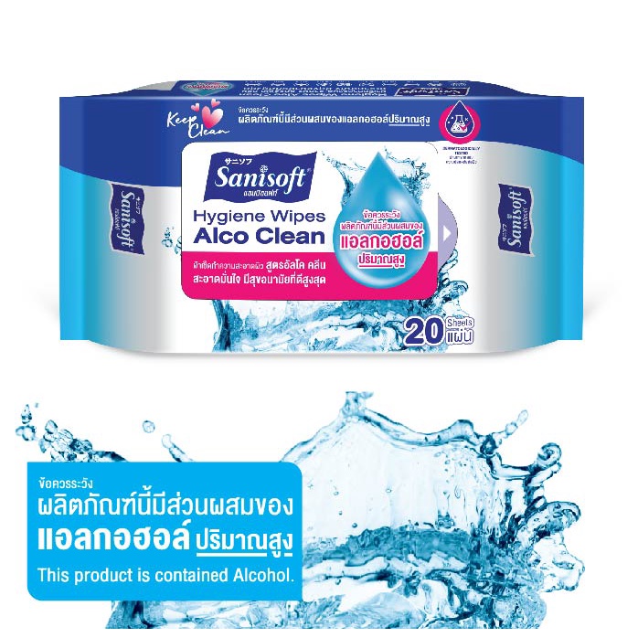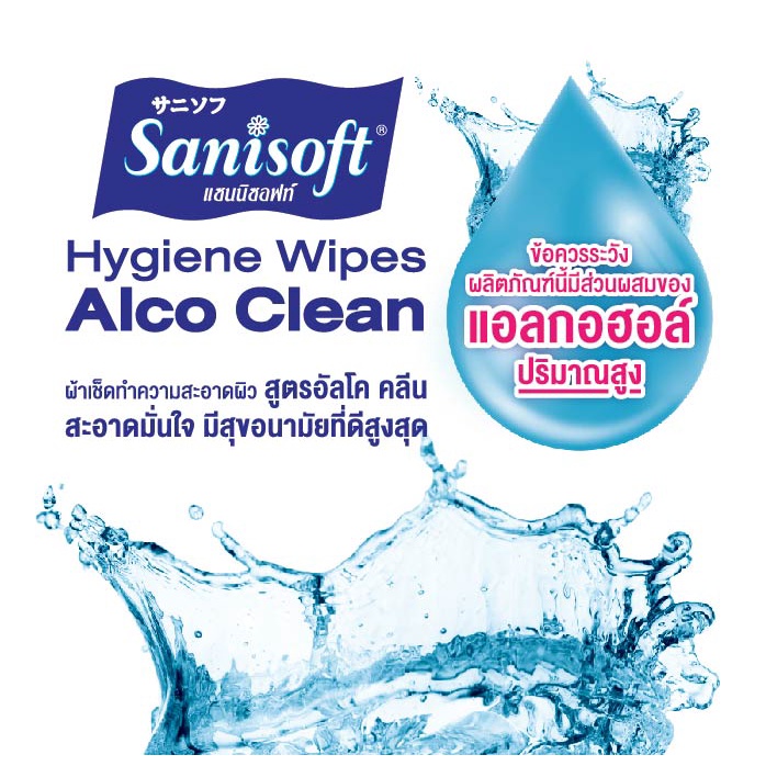 [แพ็ค X 6ห่อ] Sanisoft 70% Alcohol Hygiene Wipes AlcoClean / ผ้าเช็ดสูตรแอลกอฮอล์ 70% 20แผ่น/ห่อ