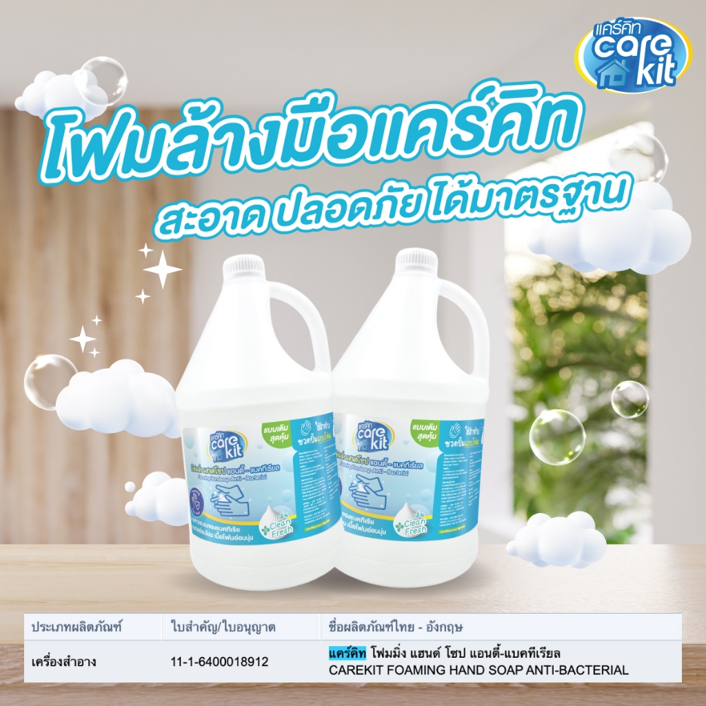 [ใหม่] โฟมล้างมือแคร์คิท แบบเติม ขนาด 3.8 ลิตร กำจัดแบคทีเรียพร้อมถนอมมือ ฟองนุ่มล้างออกง่าย Carekit