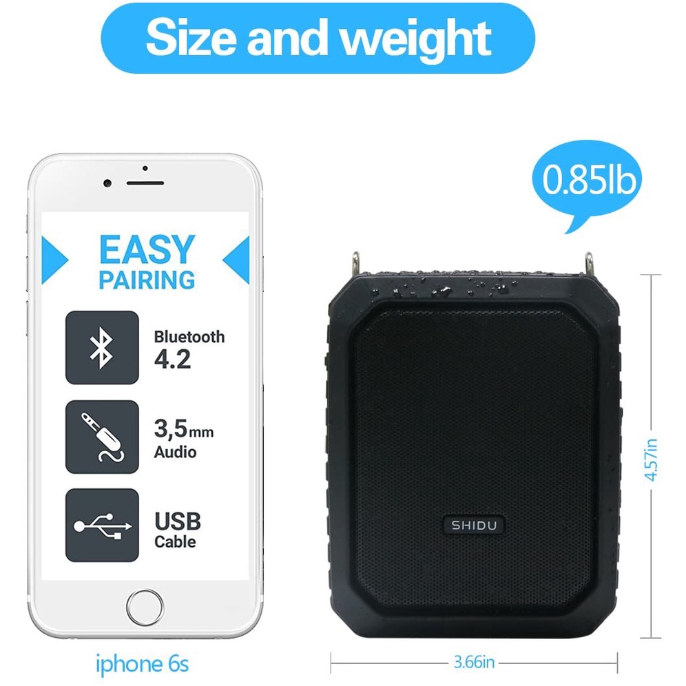 Shidu M800 UHF Wireless Voice Amplifier ชุดหูฟังไมโครโฟนไร้สายแบบพกพาสําหรับเครื่องขยายเสียงลําโพง (English Voice)
