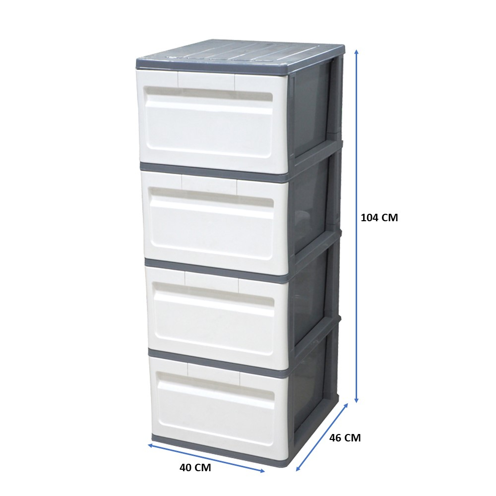 โลตัส ตู้ลิ้นชัก DIY ทรงสูงสีเทาขาว 4 ชั้น ขนาด 40x46x104 ซม. LOTUSS DRAWER SLIM GRAY-WHITE 4 TIERS