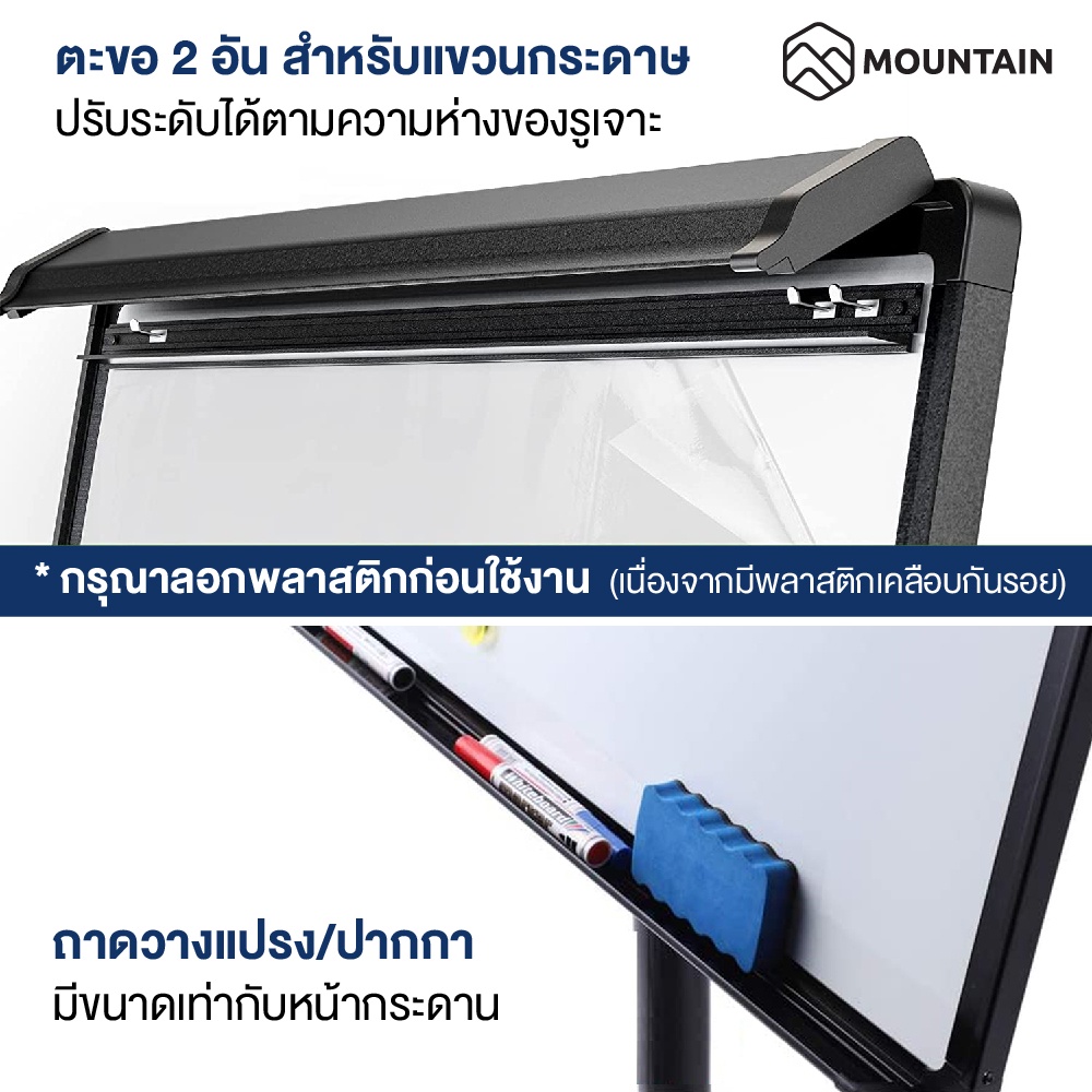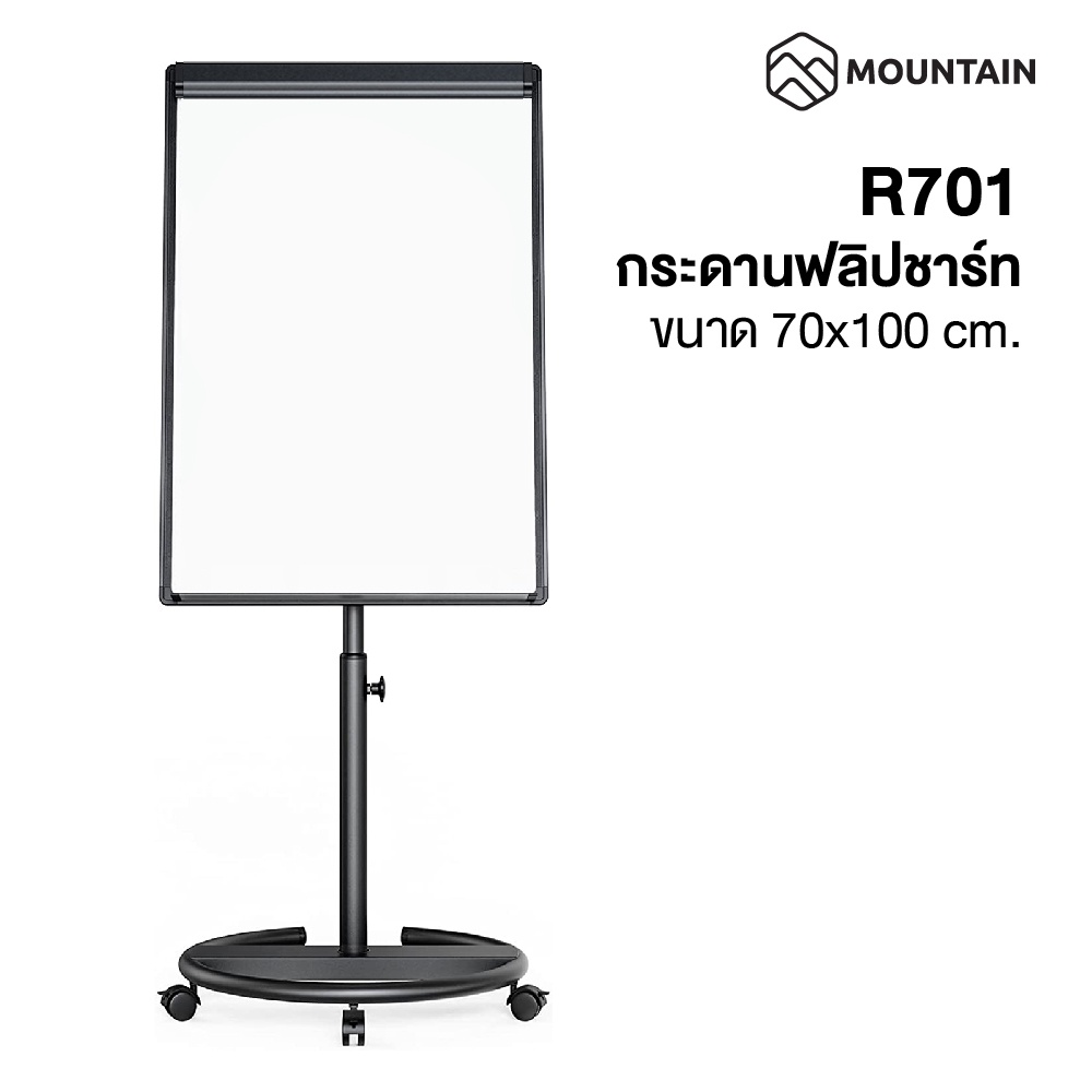 กระดานไวท์บอร์ดขาตั้ง กระดานฟลิปชาร์ท แบบมีล้อ มีแม่เหล็ก Mountain รุ่น R701 (70x100 cm.) สีดำ