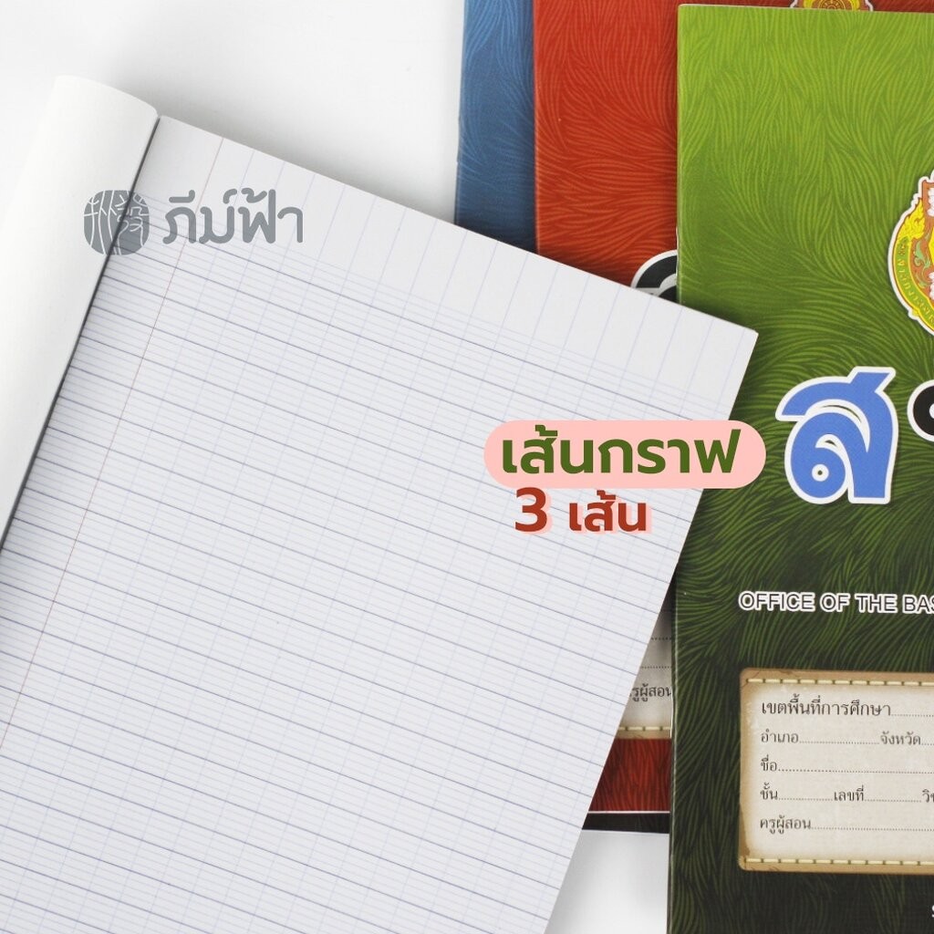 สมุดนักเรียน สพฐ. 40,80 แผ่น เส้นกราฟ 3 เส้น ขีดเส้นหน้าสีแดง (เม้งฮั้ว)