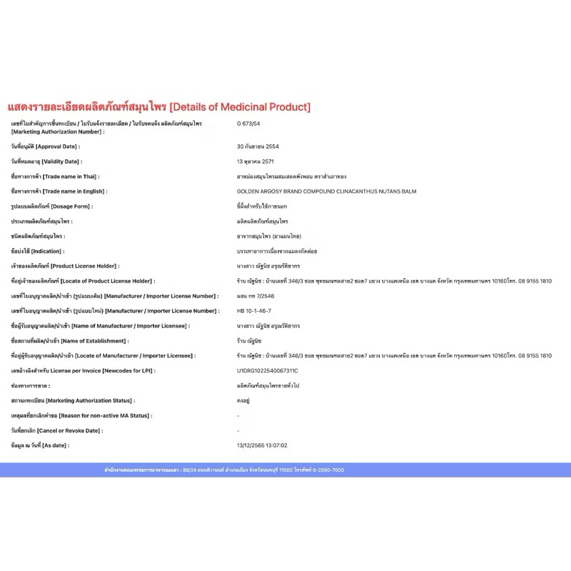 ยาหม่องสมุนไพรสำเภาทองสูตรเสลดพังพอนขนาด50กรัม(ขวดละ)
