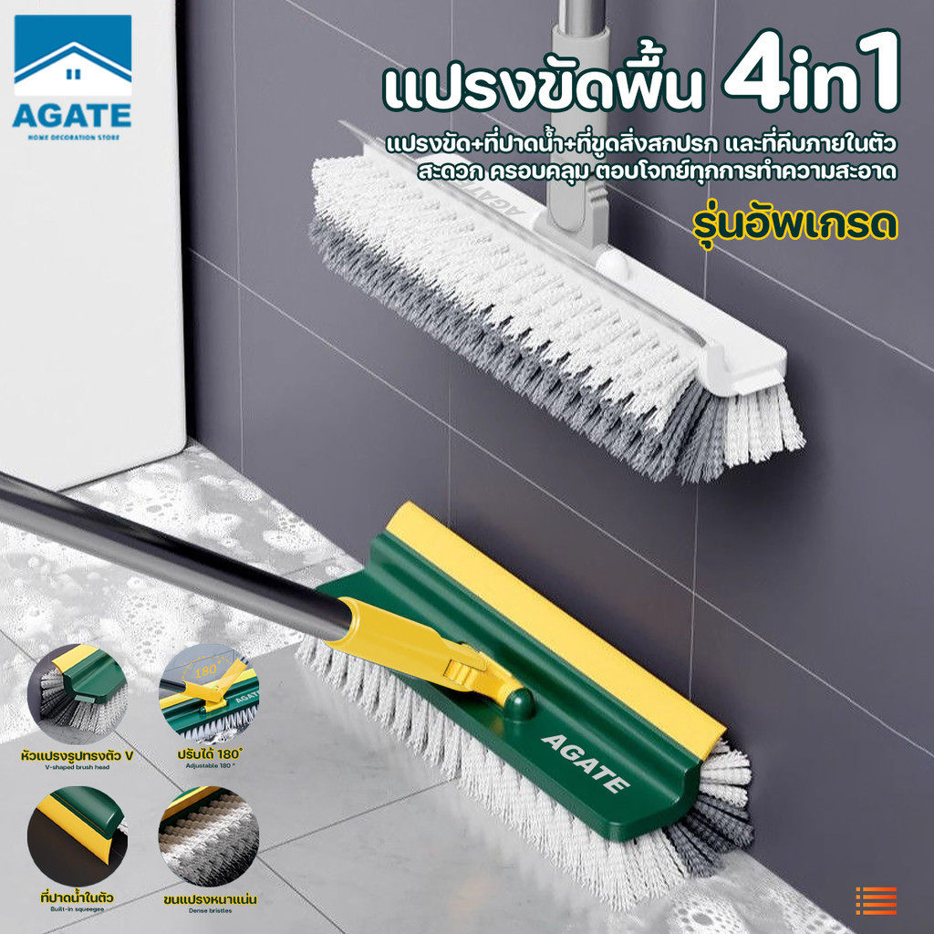 【Agate ของแท้】4in1 แปรงขัดพื้น แปรงถูพื้น แปรงขัดร่องยาแนว ขนแหลม ด้ามยาว ขัดห้องน้ำ ทำความสะอาด เข้าได้ทุกซอก ทุกมุม
