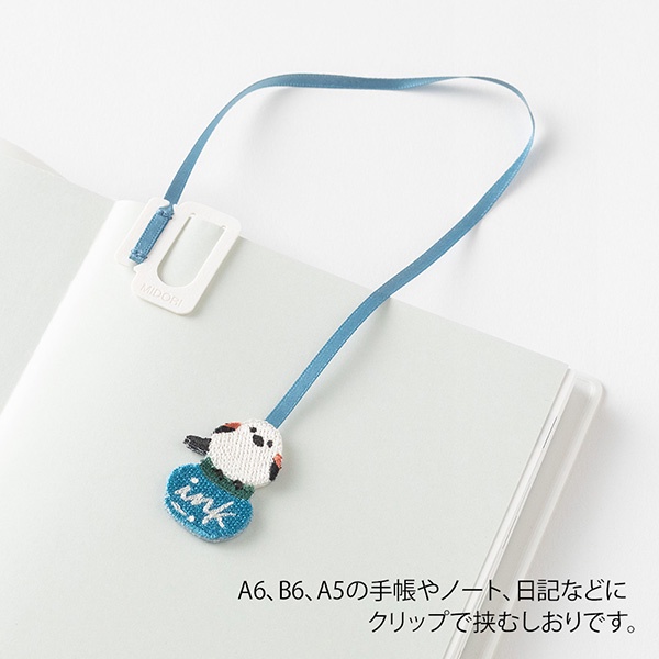 MIDORI Embroidery Bookmarker Long-tailed Tit (D62326006) / ที่คั่นหนังสือ ลายปักน้องนกกระจอก แบรนด์ MIDORI ประเทศญี่ปุ่น