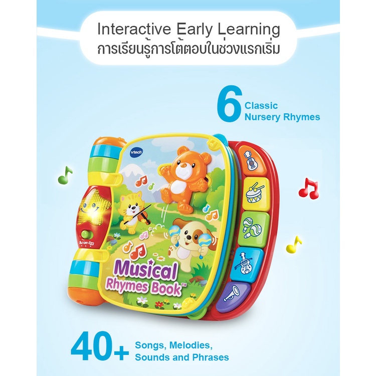 VTech วีเทค หนังสือเพลง ของเล่นสำหรับเด็ก หนังสือเพลงภาษาอังกฤษ ของเล่นเสริมพัฒนาการ 6 9 เดือน 1 ปี Musical Rhymes book