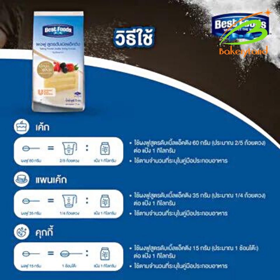 ผงฟู สูตรดับเบิลแอ็คติง ตราเบสท์ฟู้ดส์ (Best Foods) 1 กิโลกรัม
