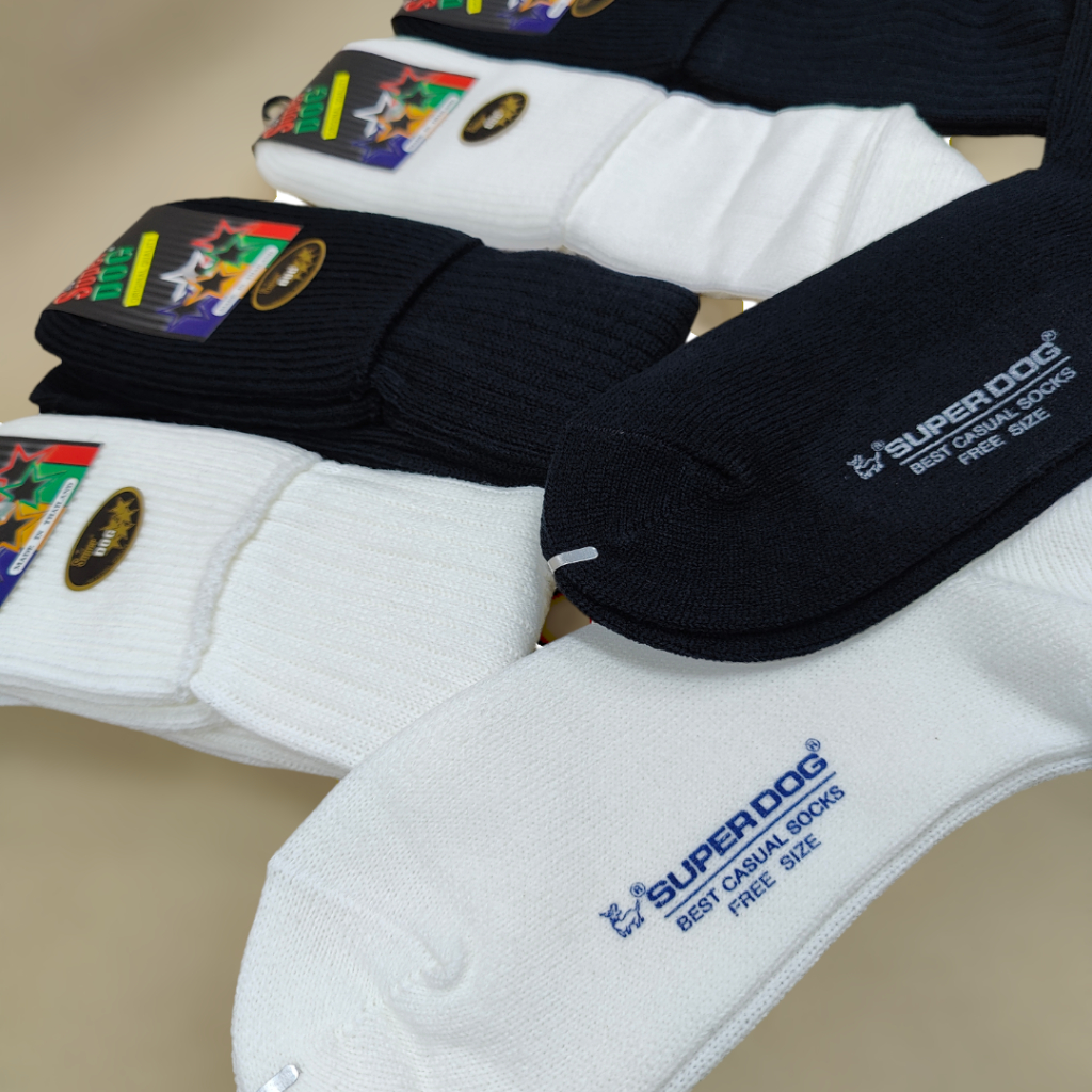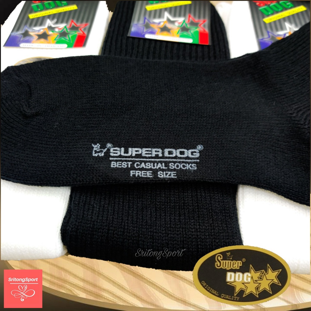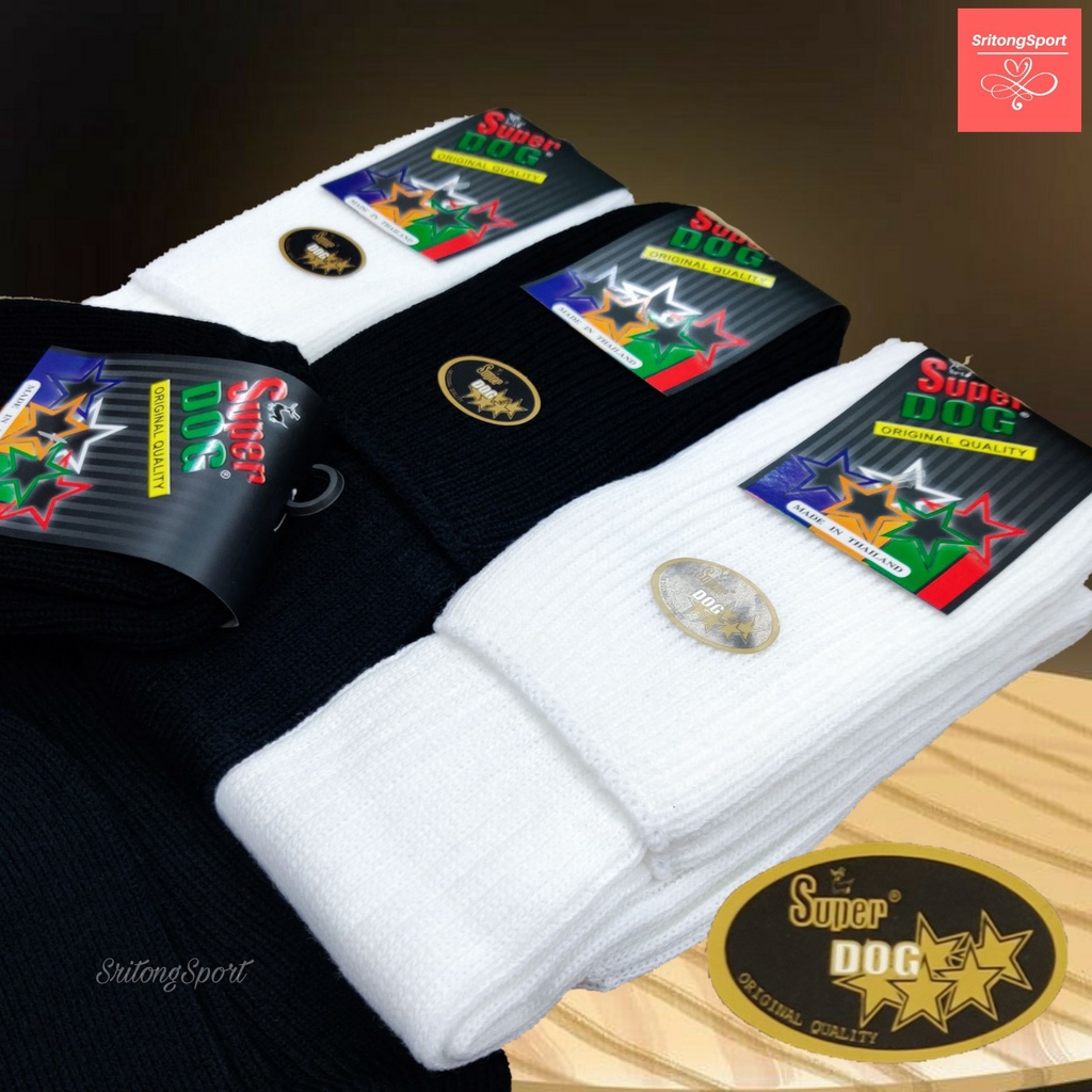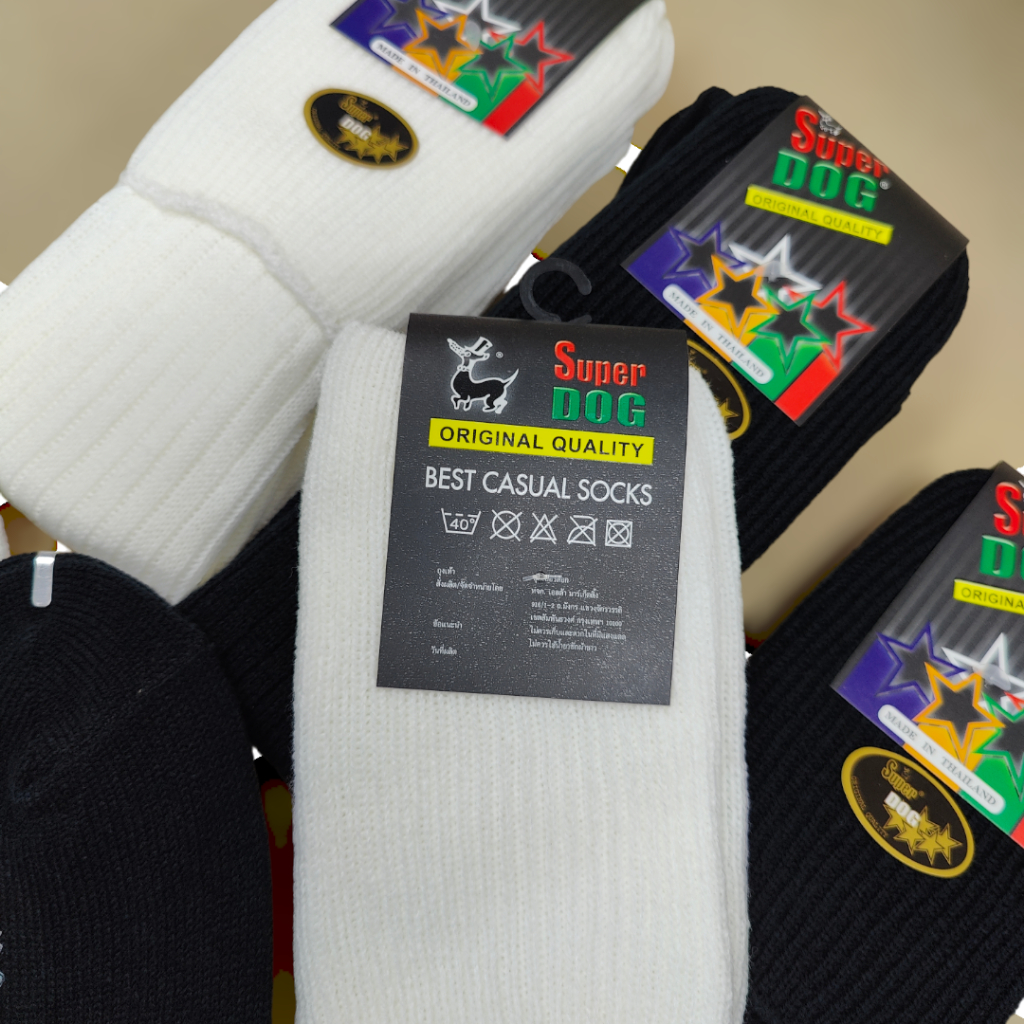 ถุงเท้ายาวเหนือเข่า Superdog สีดำและสีขาว ถุงเท้าฟุตบอล ถุงเท้าชุดไทย