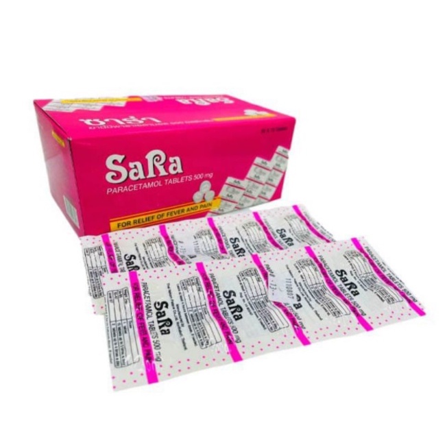 Sara Paracetamol Tablets 500 mg ซาร่า พาราเซตามอล จำนวน 10 เม็ด 1 แผง เม็ดรี 09617 / เม็ดกลม 00926