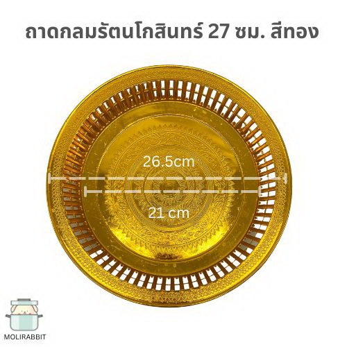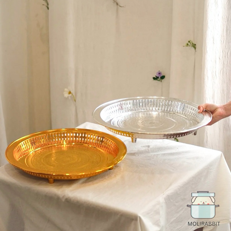 ถาดกลมรัตนโกสินทร์ 24-42 ซม สีเงิน-สีทอง.ถาดวางของไหว้ ถาดถวายพระ ถาดวางดอกไม้ พานขันหมาก ถาดพลาสติก