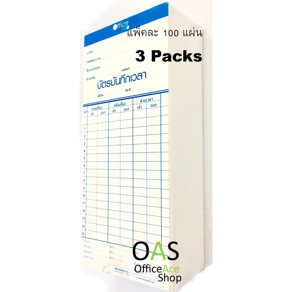 OFFICEPRO Time Card บัตรตอกเวลา รุ่น TCARD-OP : ชุด 3 แพ็ค(แพ็คละ 100แผ่น) = 300 แผ่น