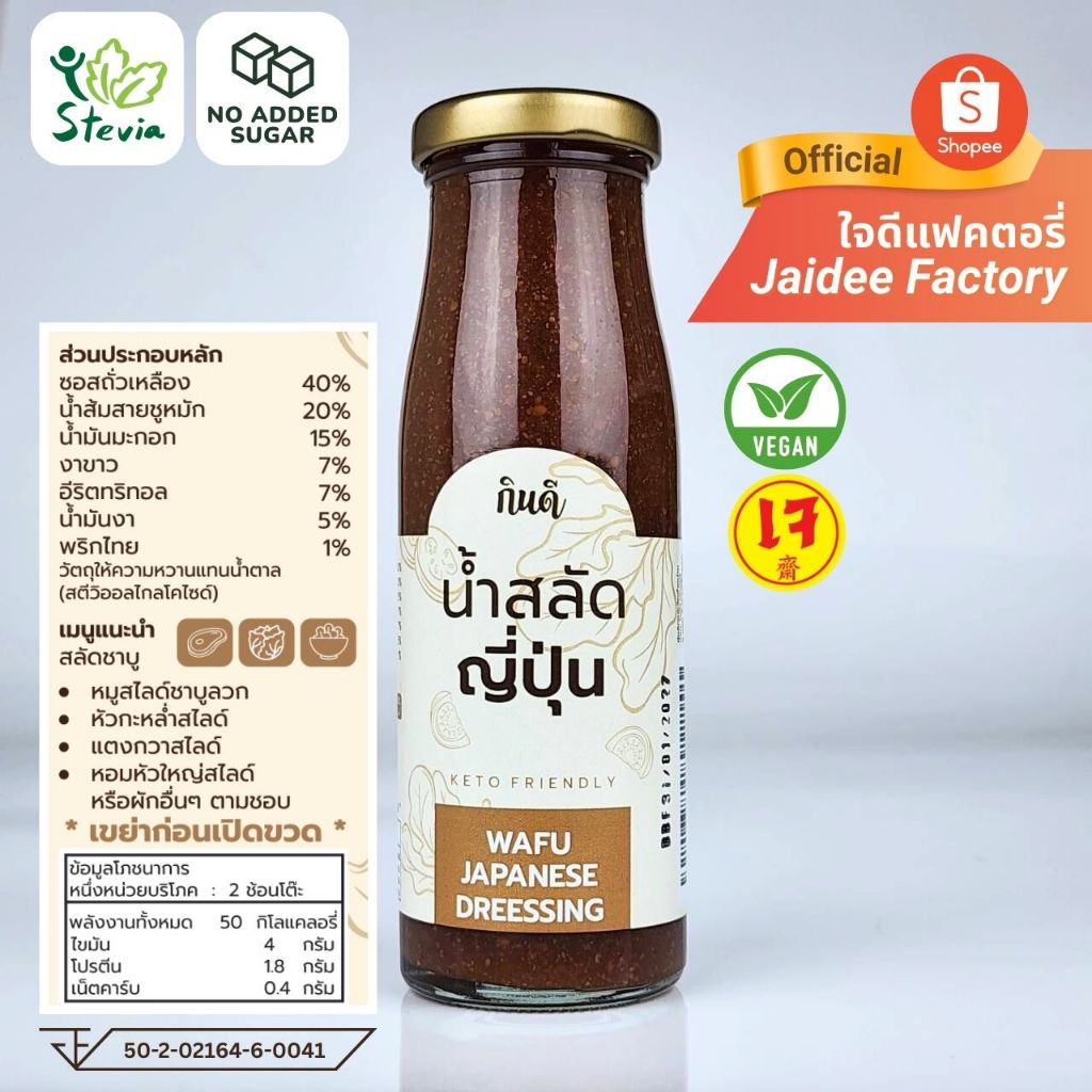 น้ำสลัดญี่ปุ่น 0%Sugar Wafu Dressing 200 มล. น้ำสลัดคีโต ไม่มีน้ำตาล กินดีคีโต ใจดีแฟคตอรี่