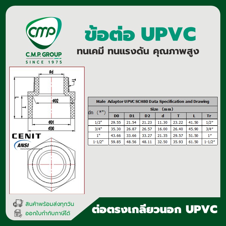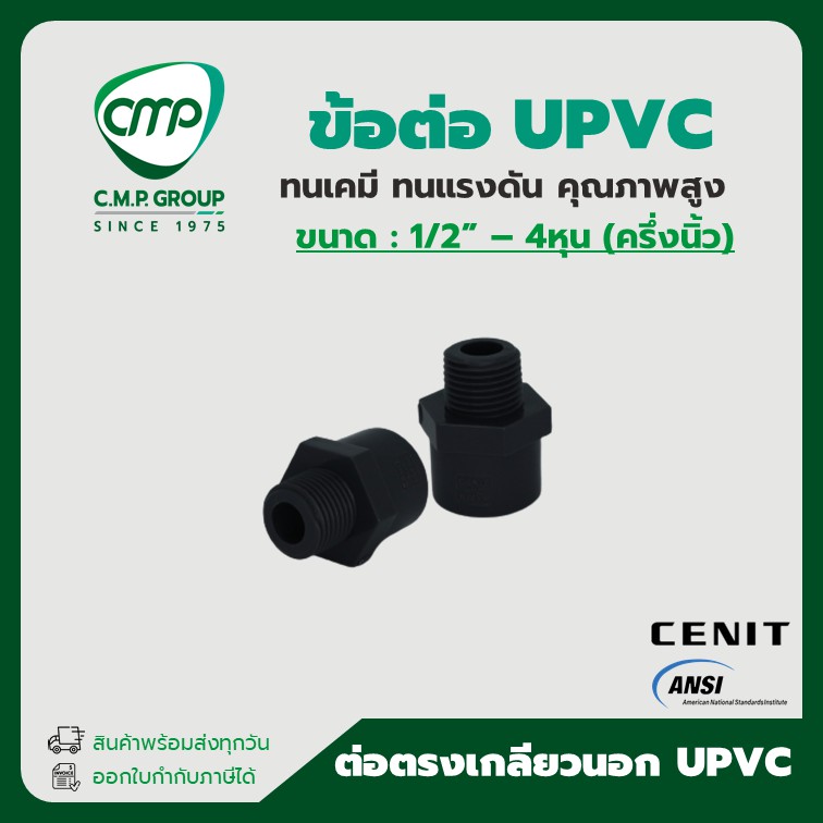 [พร้อมส่ง] ข้อ ต่อตรงเกลียวนอก UPVC 4หุน ถึง 1นิ้วครึ่ง ANSI x NPT ขนาด 1/2" - 1-1/2" ข้อต่อ ยูพีวีซี ทนแรงดัน ทนเคมี