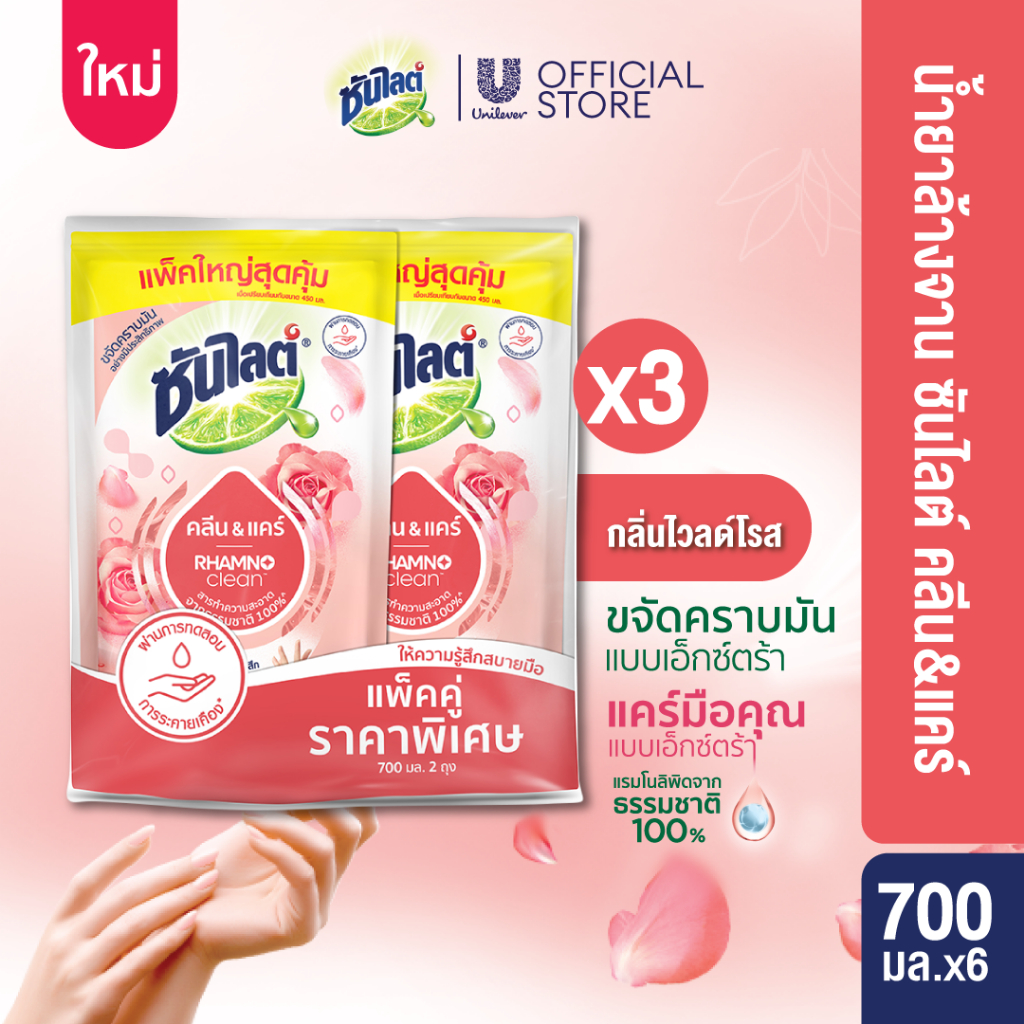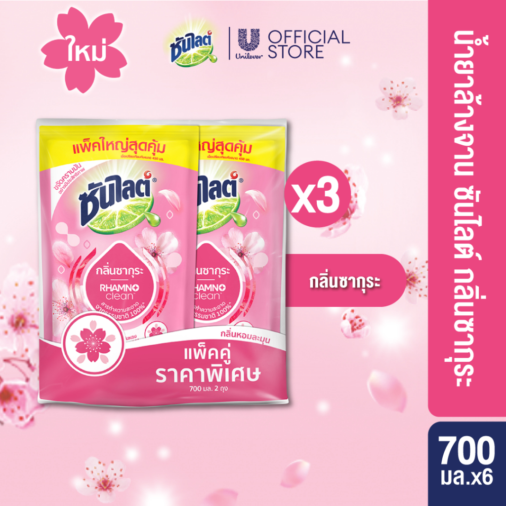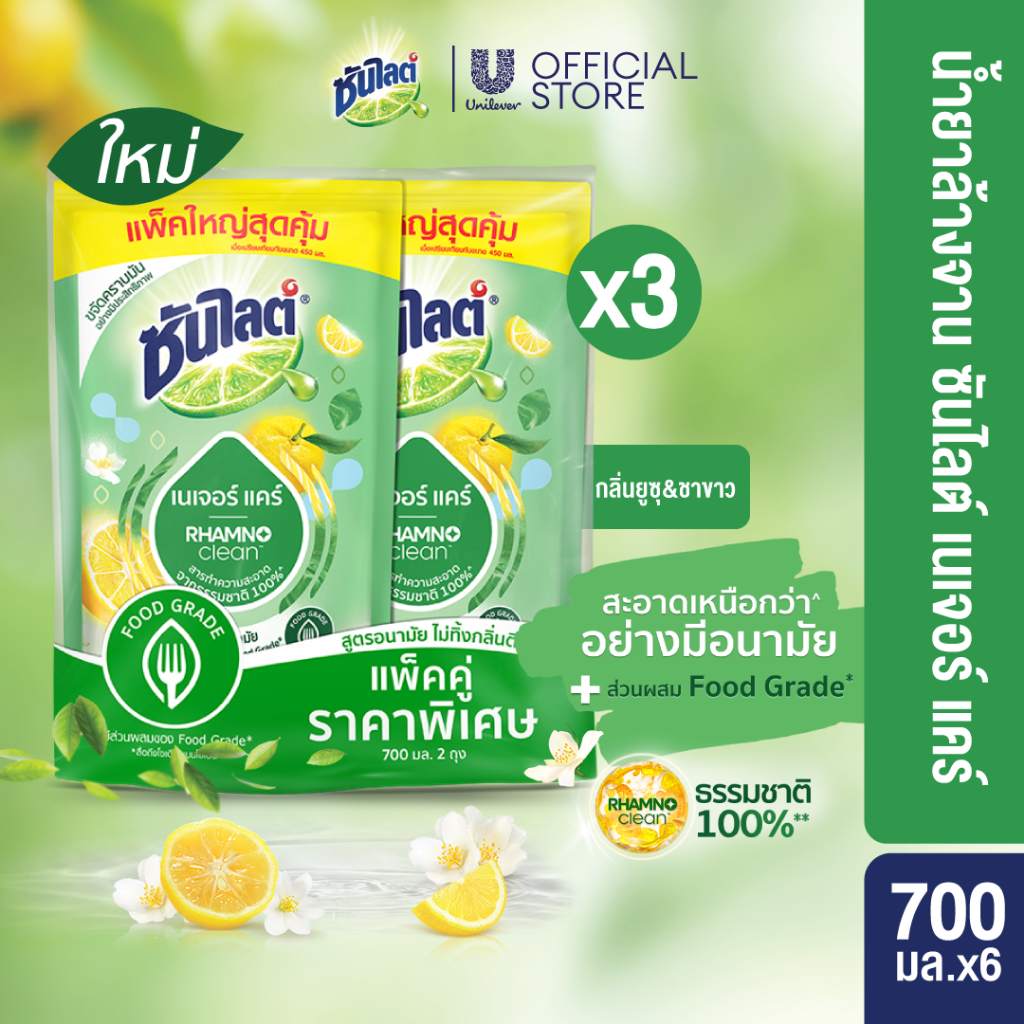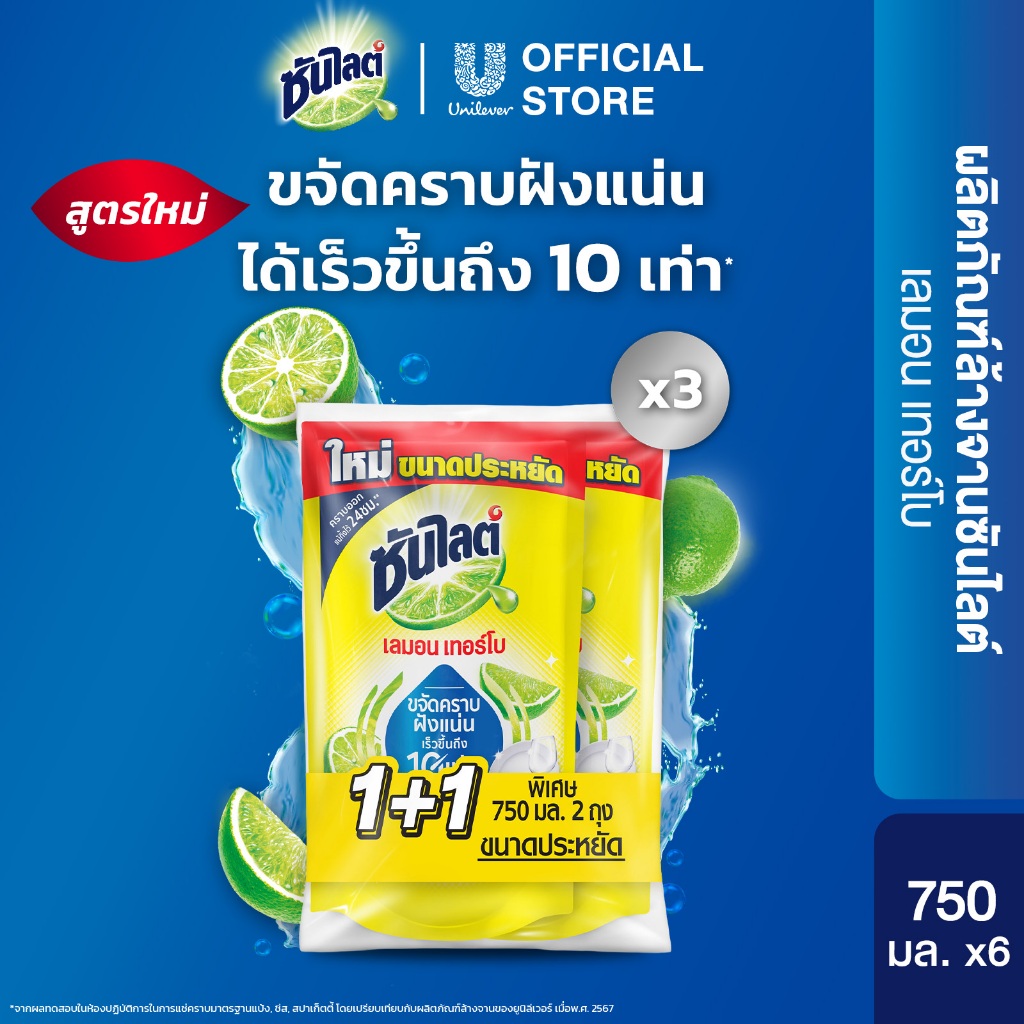 ซันไลต์ พลัส น้ำยาล้างจาน ถุงเติม (1+1) 720 - 750 มล. x3 Sunlight Plus Dishwashing Liquid (1+1) 720 - 750 ml. x3