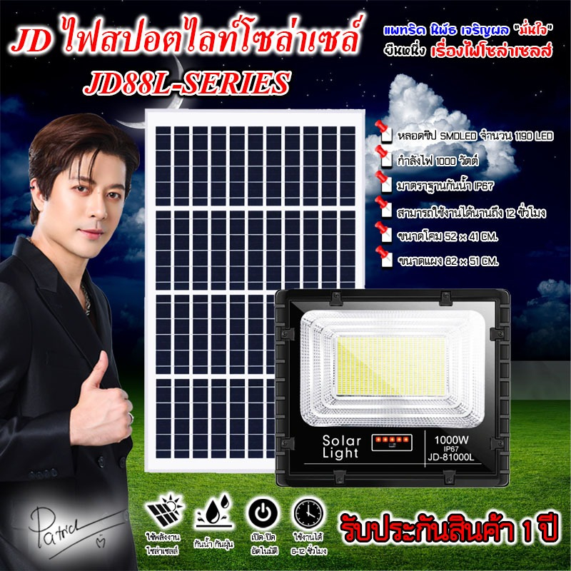 ไฟโซล่าเซลล์ สปอตไลท์JD-81000L-W แสงขาว (1000W) Jindian Solar Street Lightพลังงานแสงอาทิตย์