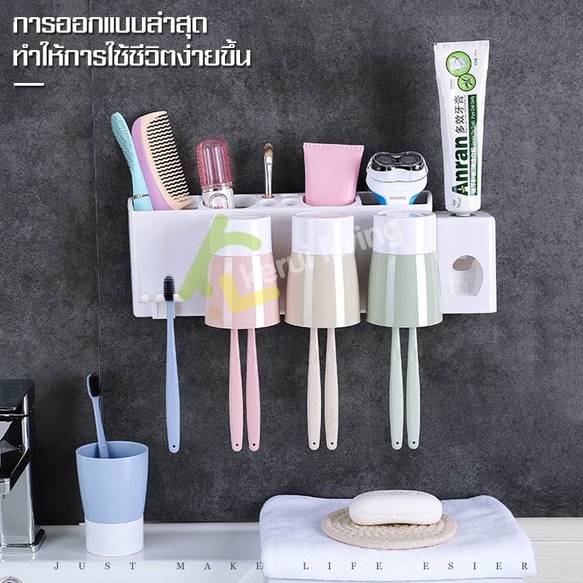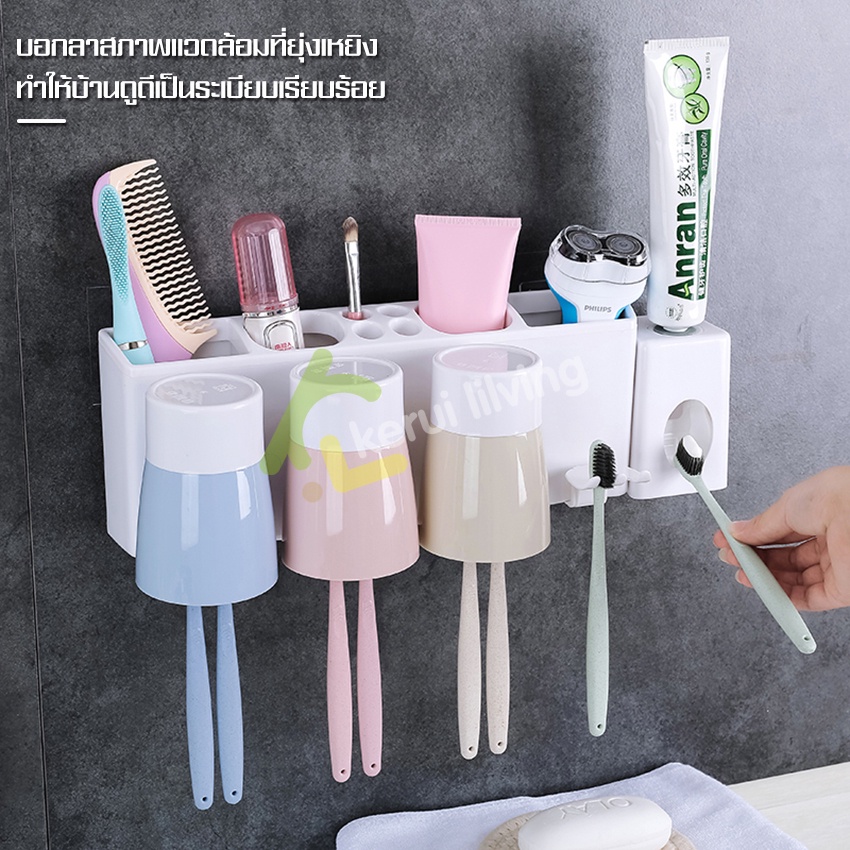 Allsking กล่องเก็บแปรงสีฟัน พร้อมบีบยาสีฟันอัตโนมัติ กล่องใส่แปรงสีฟัน ยาสีฟัน ที่ใส่แปรงสีฟัน ชั้นวางของในห้องน้ำ