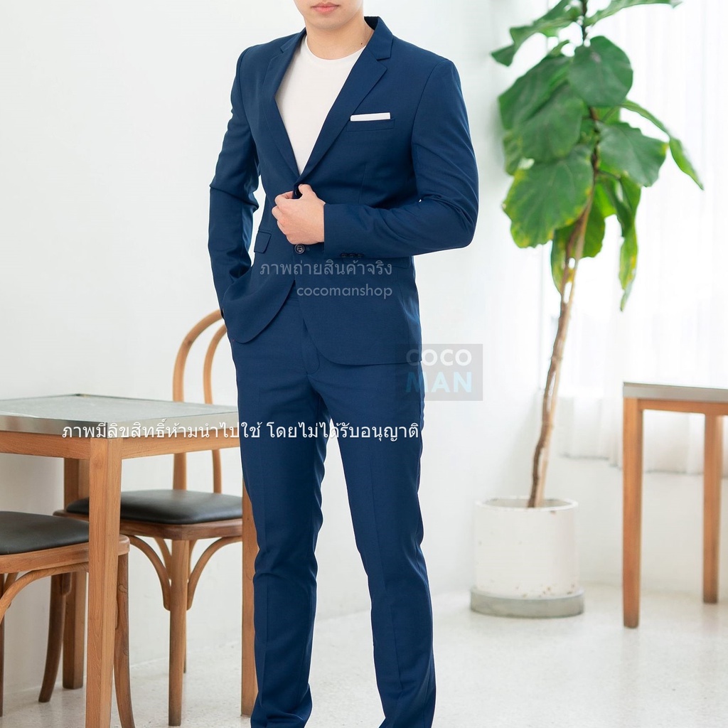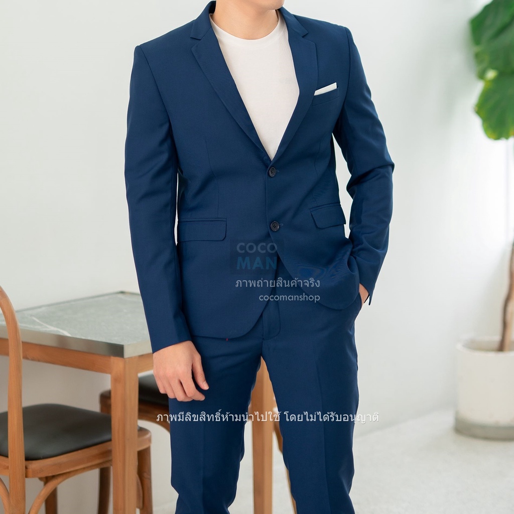 COCO-MAN เสื้อสูทกระดุม 2 เม็ด สีน้ำเงิน ชุดสูทผู้ชาย มีกางเกงเข้าชุด ขายแยก เสื้อ กางเกง ใส่ไปงาน