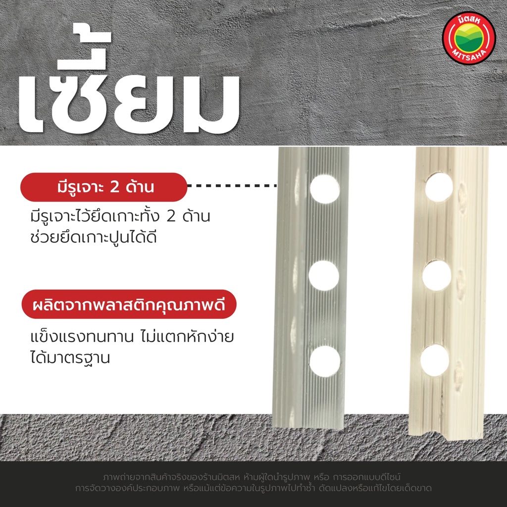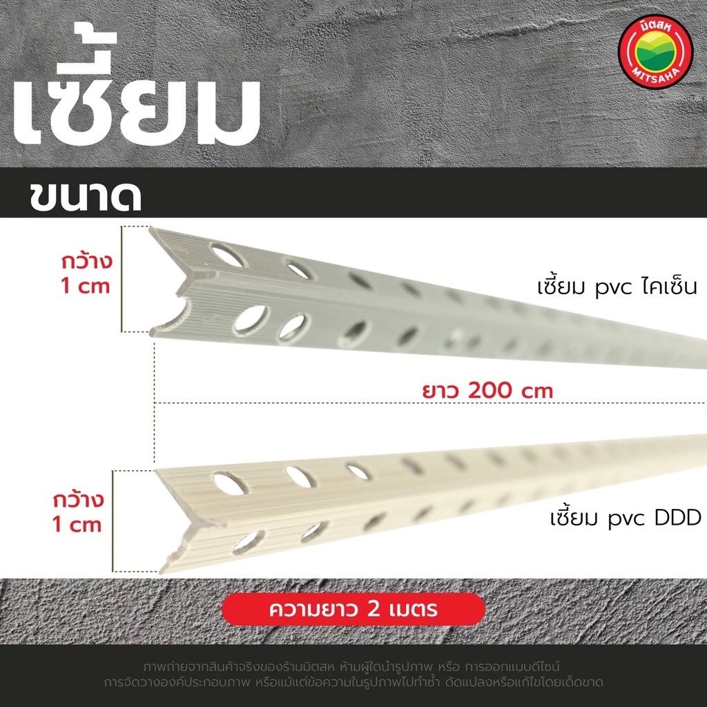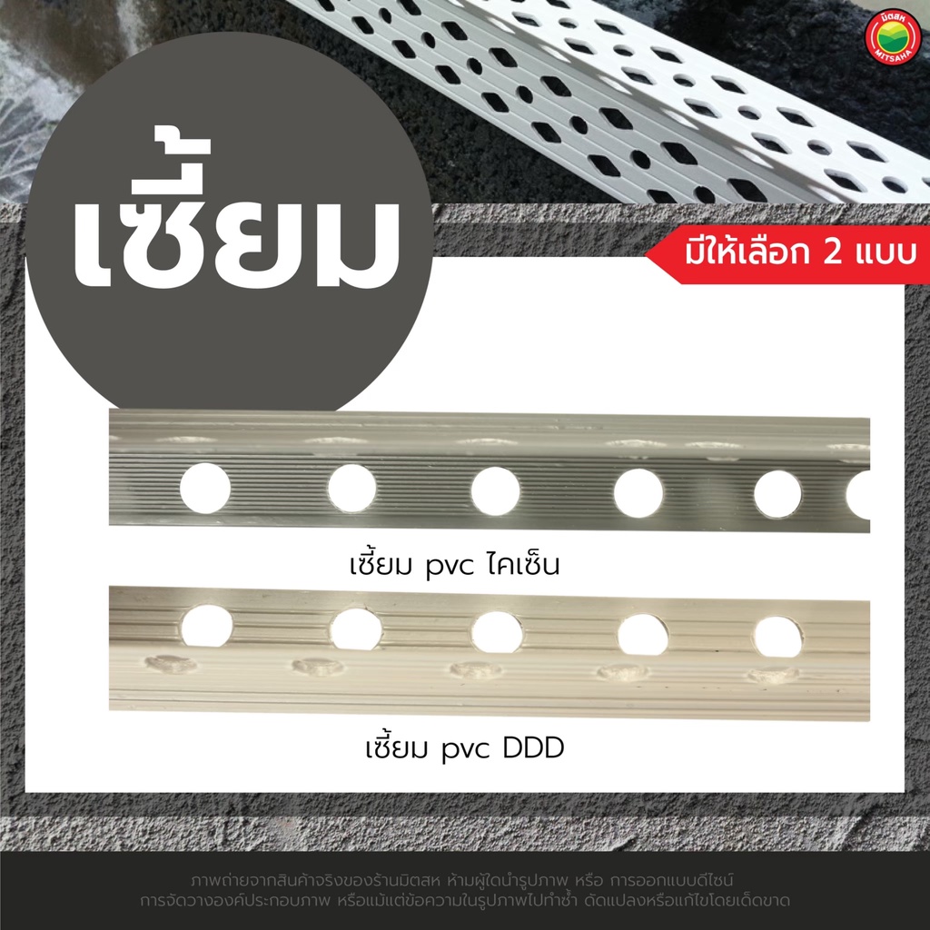 เซี้ยม พีวีซี พลาสติก ตรา ดีดีดี, ไคเซ็น ขนาด สัน 7 มิลลิเมตร ยาว 2 เมตร สีเทา PVC CORNER BEAD ขายเป็นเส้น เซี๊ยม มิตสห
