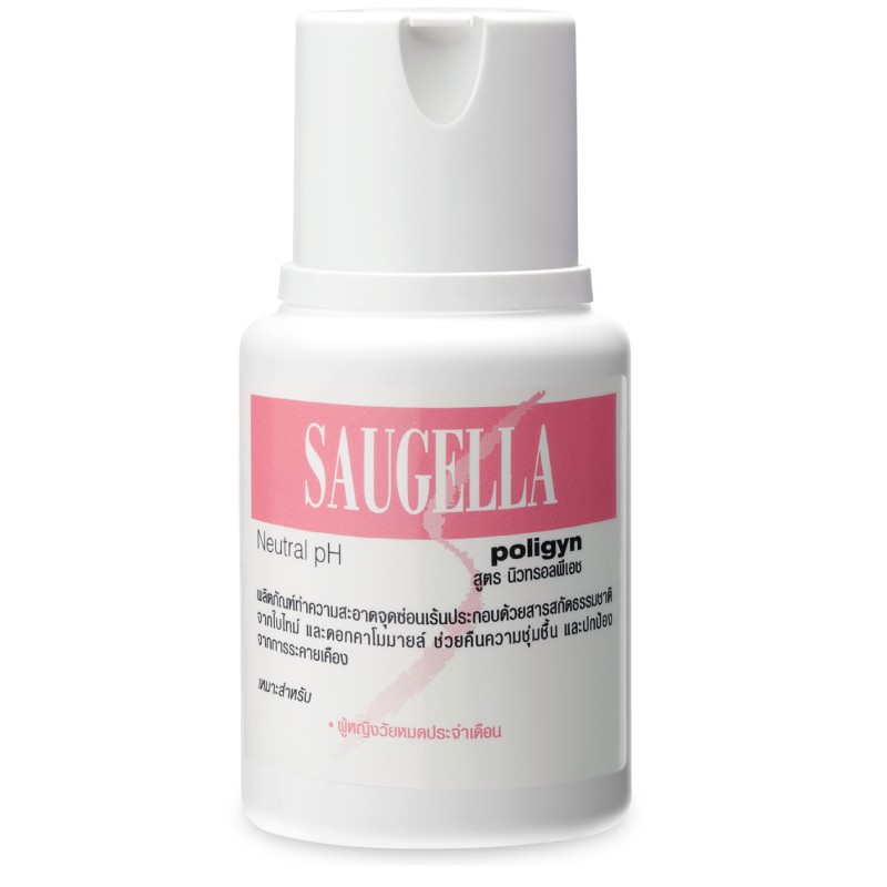 Saugella Poligyn Neutral pH 100 ml. ผลิตภัณฑ์ทำความสะอาดจุดซ่อนเร้น สูตรสำหรับวัยหมดประจำเดือน