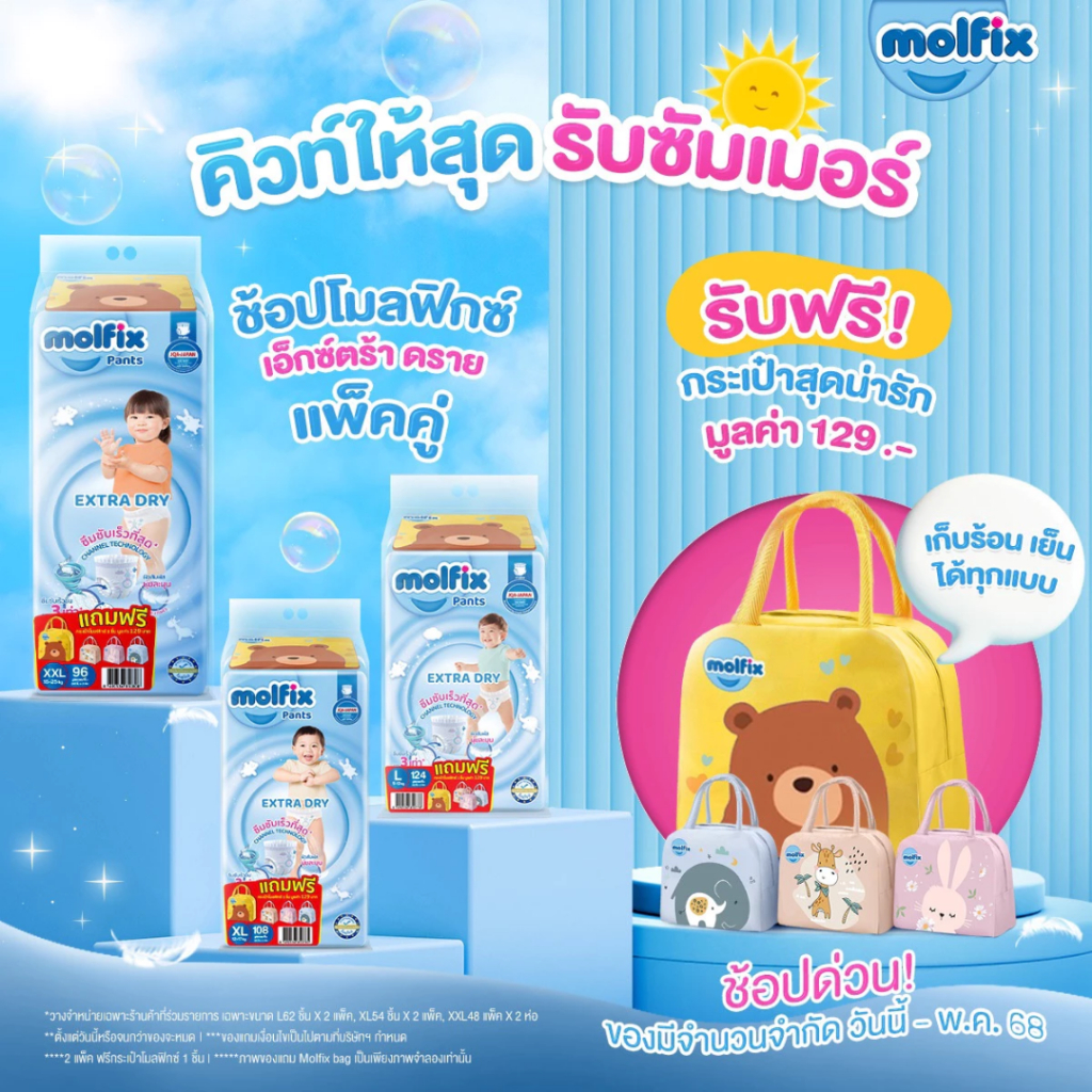 Molfix Extra Dry ผ้าอ้อมเด็ก โมลฟิกซ์ ผ้าอ้อมสำเร็จรูป แพมเพิส (ไซส์ S-3XL) แพมเพิสเด็ก