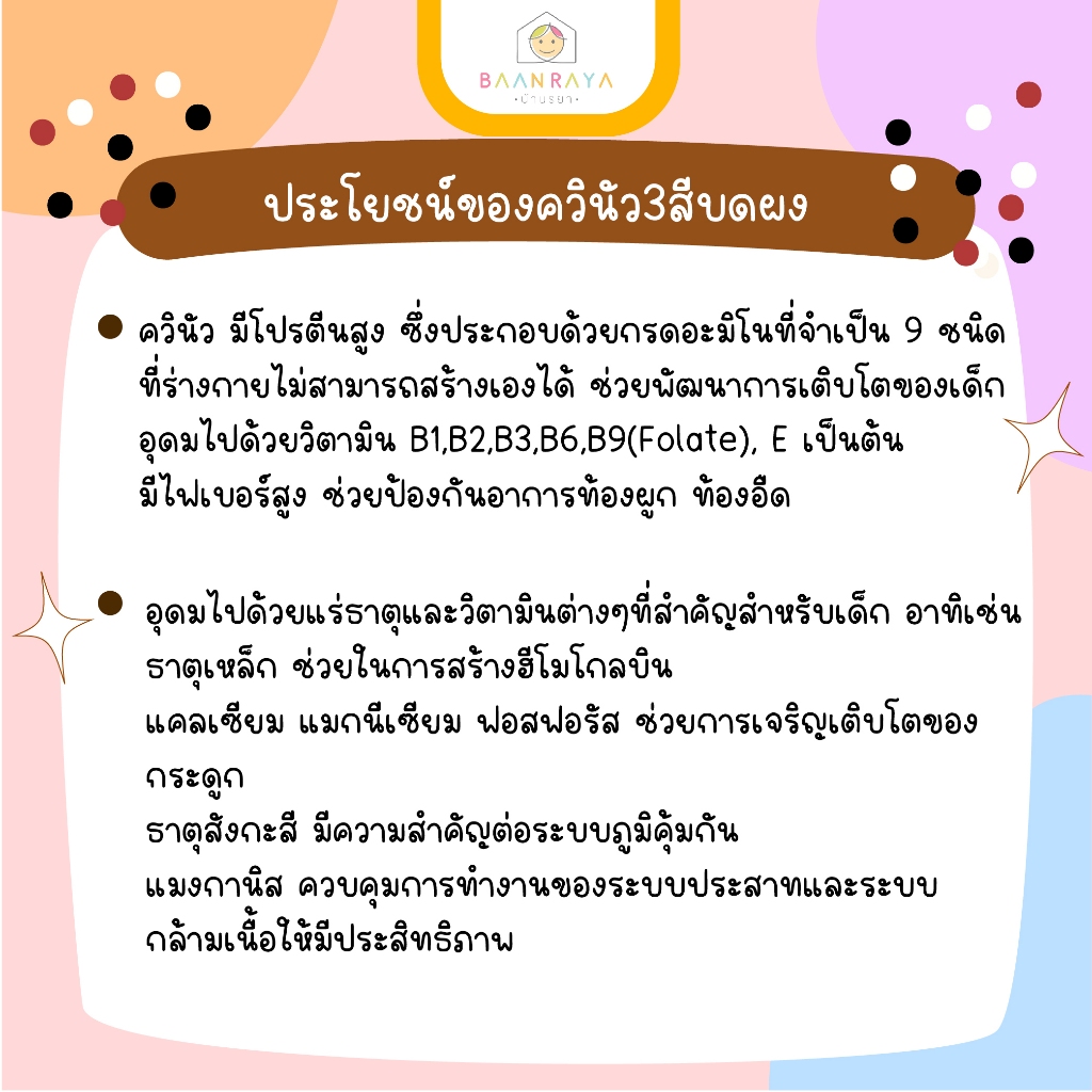 ควินัว ออแกนิค แบบผง ต้องต้ม อาหารเด็ก 6 เดือนขึ้นไป 120 กรัม ตรา บ้านรยา อาหารเด็ก บ้านรยา (6m+) อาหารเด็ก อาหารเสริมเ