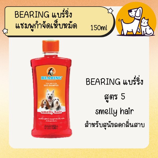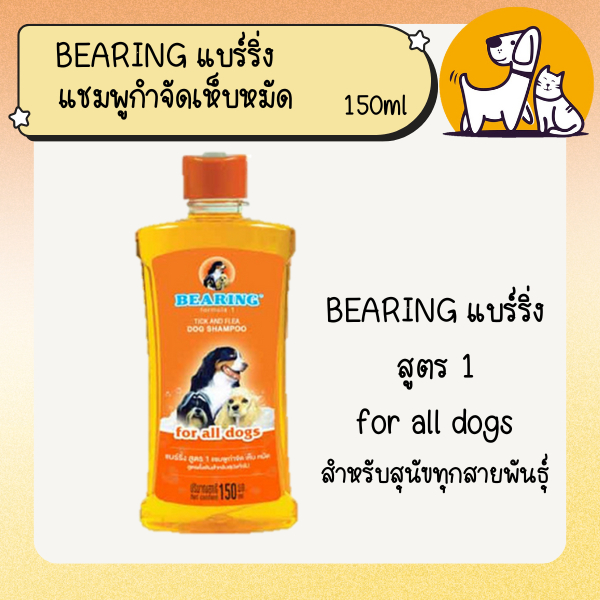 BEARING แชมพูกำจัดเห็บหมัดสุนัข แชมพูหมา มีกลิ่นสาบ แชมพูกำจัดเห็บ หมัด Tick & Flea Dog Shampoo 150มล.