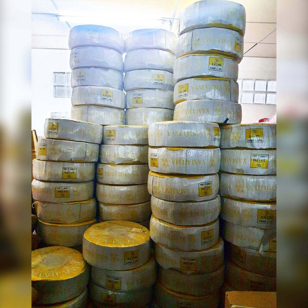 YAMAJIMA เทปน้ำหยด รุ่น (กิ๊บ1รู) 10 ซม. (สีเหลือง) หนา 0.18 มิล 1000 เมตร น้ำหยด เทปน้ำหยด