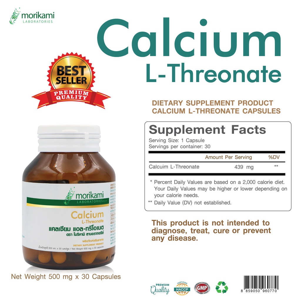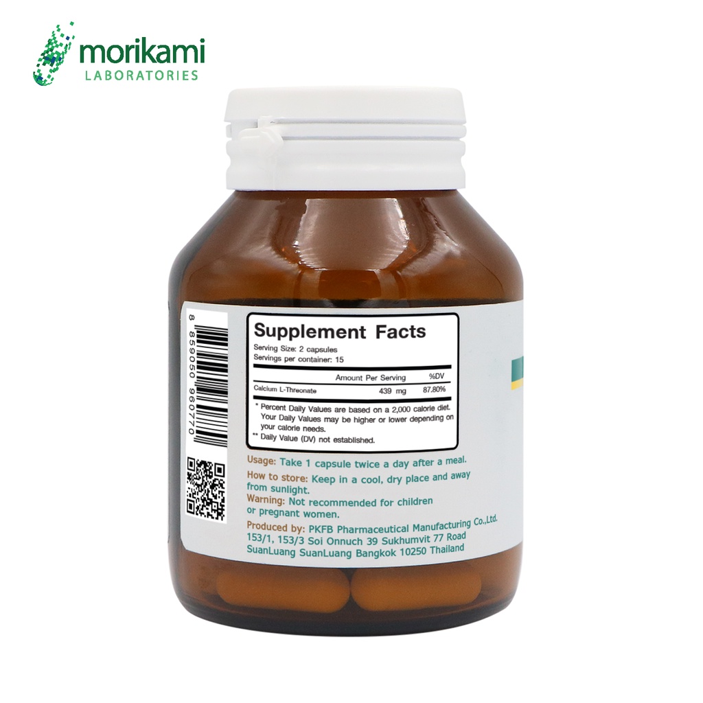 แคลเซียม แอล-ทรีโอเนต Calcium L-Threonate x 1 ขวด morikami LABORATORIES บรรจุ 30 แคปซูล แคลเซียม แอลทรีโอเนต