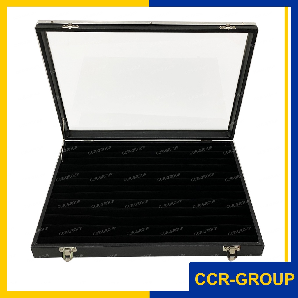 กล่องกระจกรอนโชว์แหวน กันฝุ่น ลม แข็งแรงทนทาน สีแดง สีน้ำเงิน และสีดำ ใช้โชว์วางขายหรือเก็บให้สวยงาม