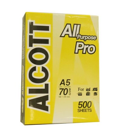 Alcott เหลือง กระดาษถ่ายเอกสาร A5 70 แกรม Copy Paper 70GSM (1รีม/500แผ่น) ของแท้