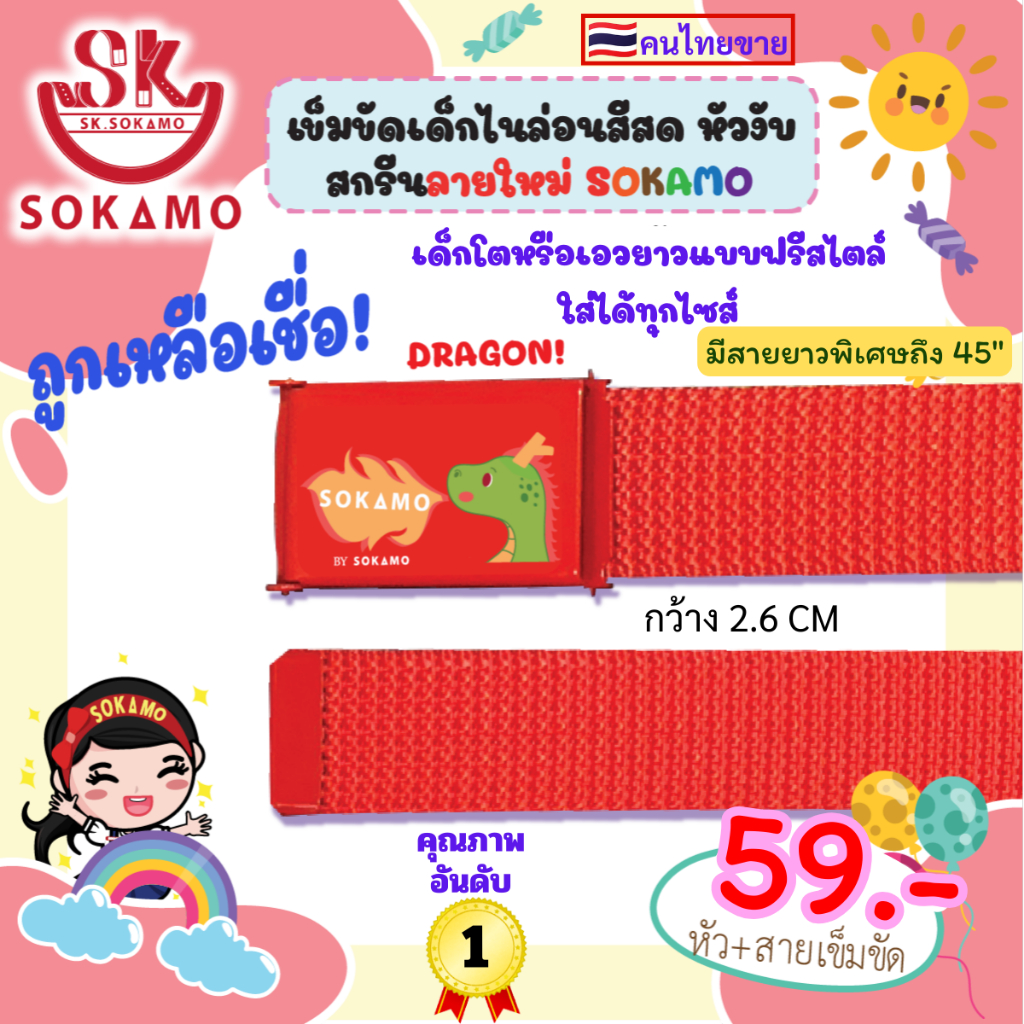 เข็มขัดไนล่อนสี หัวสกรีน เด็ก (SOKAMO)