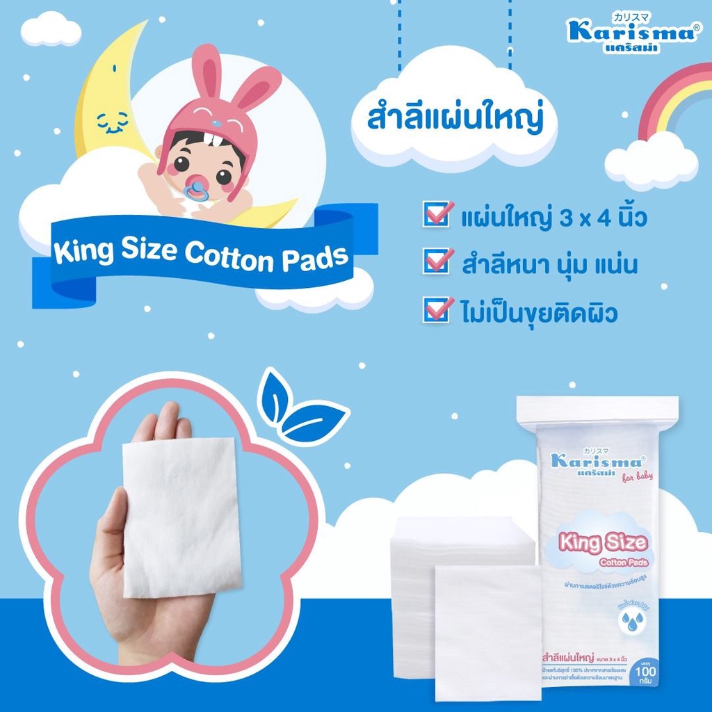 Karisma Cotton pads King Size 3x4 นิ้ว 100 กรัม แคริสม่า สำลีแผ่นใหญ่พิเศษ คาริสม่า