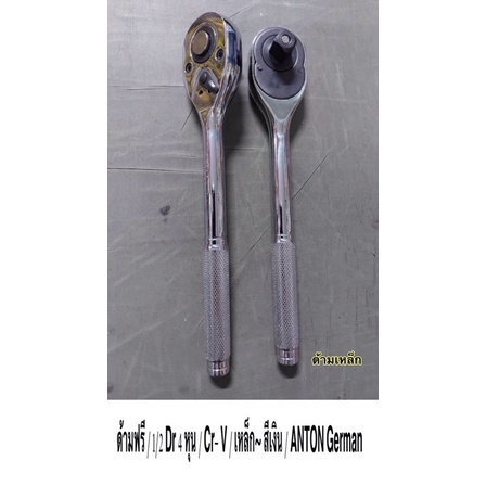 ANTON German ด้ามฟรี ด้ามก๊อกแก๊ก ประแจด้ามบล็อก 2หุน-1/4 Dr / 4หุน-1/2 Dr / ด้ามเหล็ก แข็งแรงทนทาน สีเงิน ราคา ต่อตัว