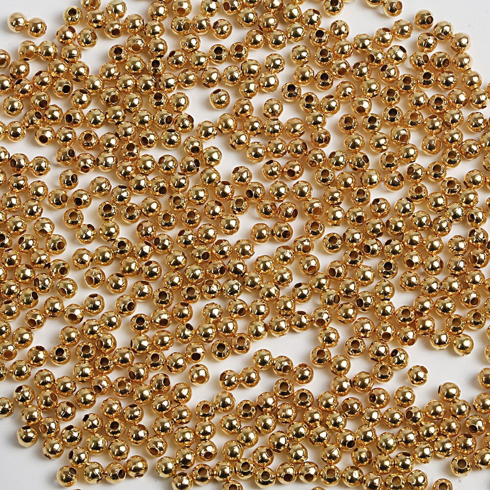 ลูกปัดโลหะ เส้นผ่าศูนย์กลาง 2.4 3.2 4.0 มม. สีทอง เงิน บรอนซ์ สําหรับทําเครื่องประดับ