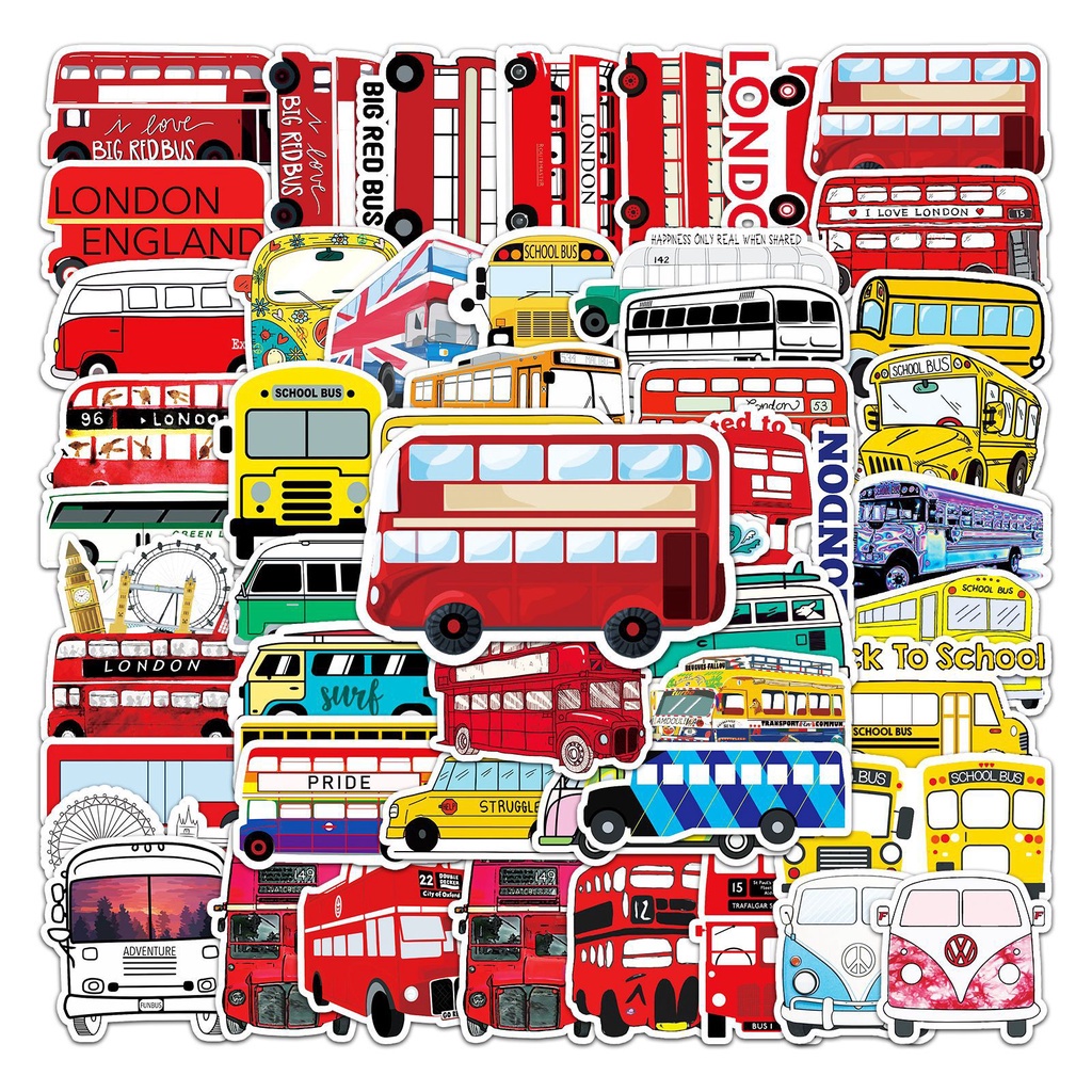พร้อมส่ง LONDON BUS รถโรงเรียน รสบัส vintage sticker กันน้ำ สติ๊กเกอร์ ใช้ซ้ำได้ รถตำรวจ รถพยาบาล