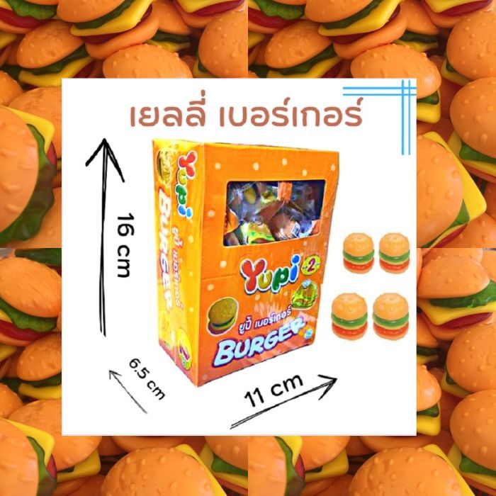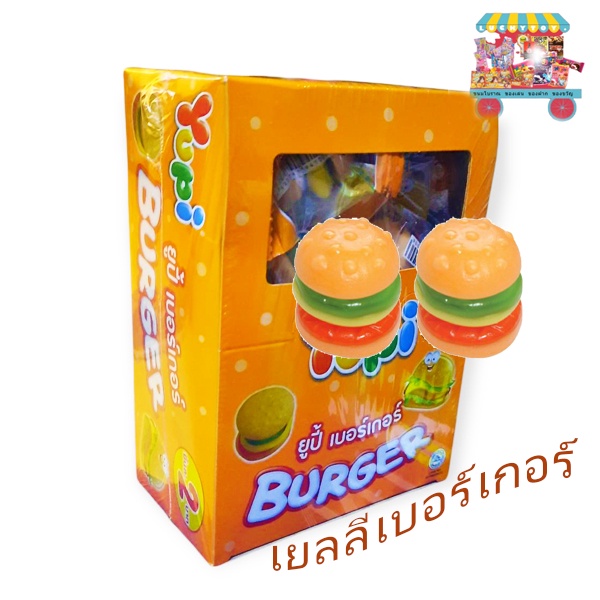 ขนมยูปี้เบอร์เกอร์เยลลี่รสผลไม้เคี้ยวหนึบ1กล่อง24ชิ้น48บาท