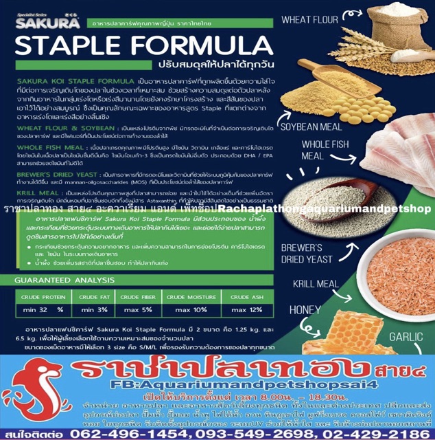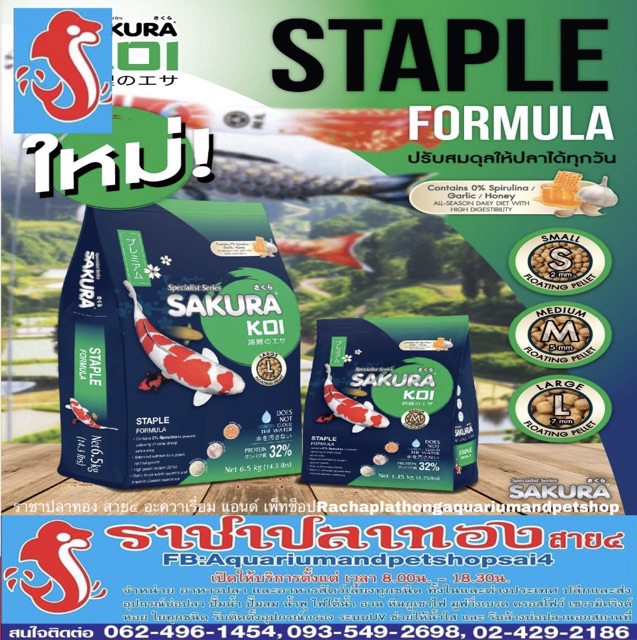 อาหารปลา ซากุระโค่ย สูตรมาตรฐาน SAKURA KOI ขนาด 6.5 กก.