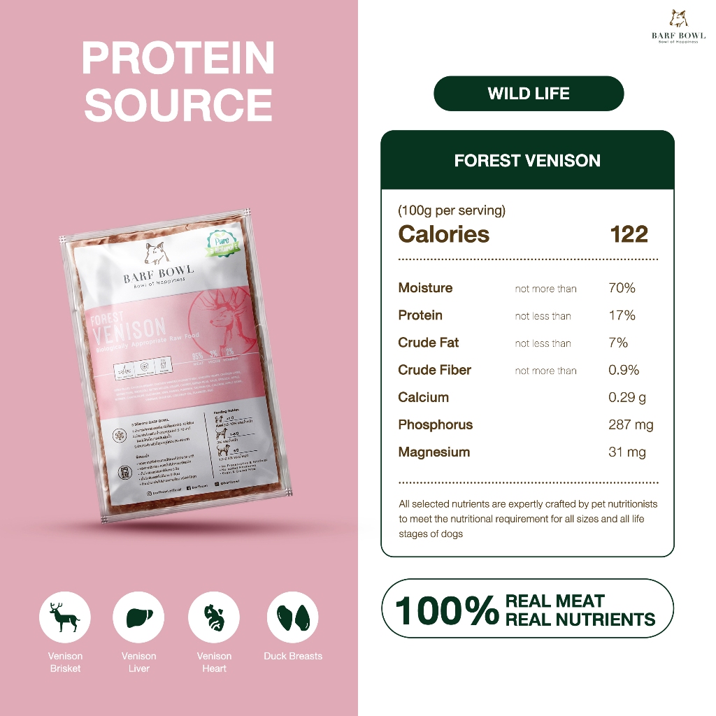 บาร์ฟสุนัข - BARF สูตรกวางผสมเป็ด l 500g - (Wild Life) Forest Venision