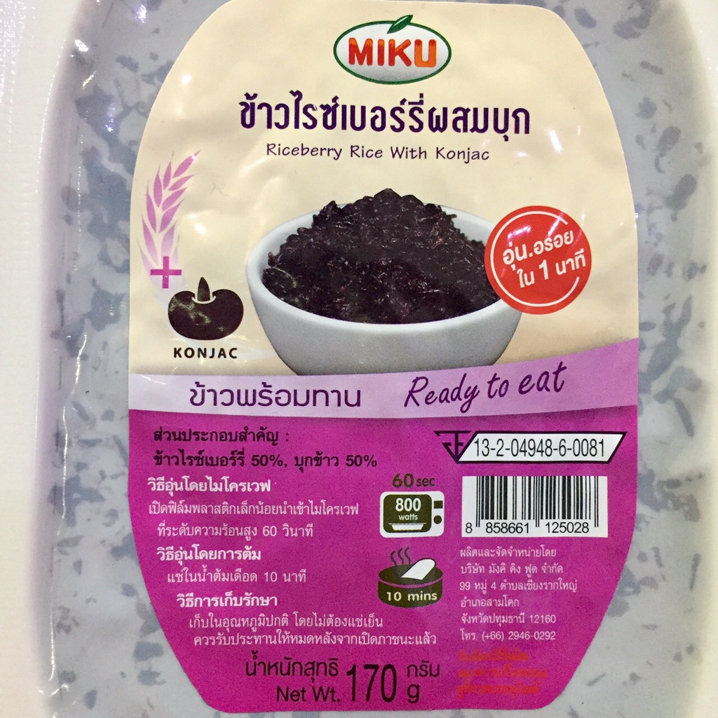 MIKU ข้าวไรซ์เบอร์รี่ผสมบุก พร้อมทาน 170 กรัม (FR0006-1) อาหารคลีน Riceberry Rice with konjic Ready to eat