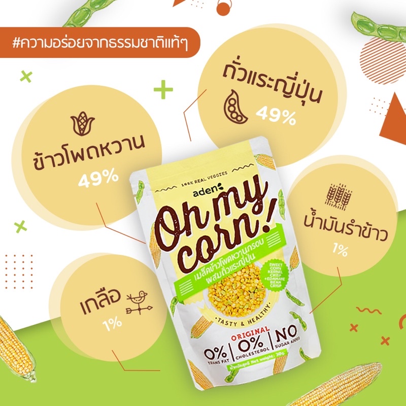 Oh my corn! 12 ซอง (คละรสชาติได้) ข้าวโพดหวานกรอบ,ข้าวโพดหวานผสมถั่วแระญี่ปุ่น - ขนมเพื่อสุขภาพ แคลน้อย