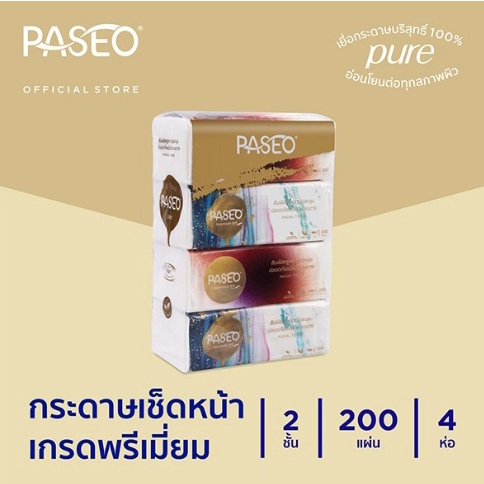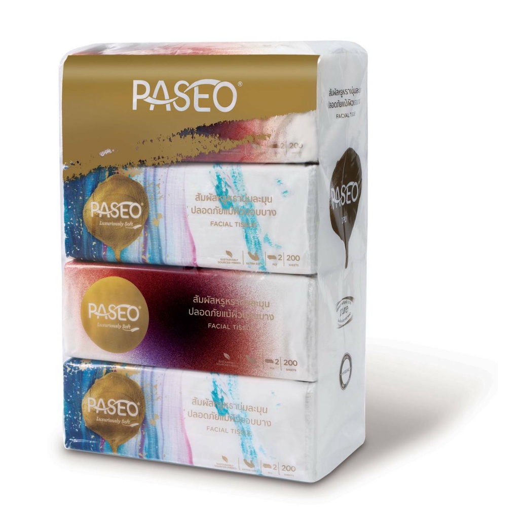 Paseo พาซิโอ กระดาษทิชชู่ ลักซ์ชัว ซอฟท์แพ็ค 200 แผ่น (แพค 4ห่อ)