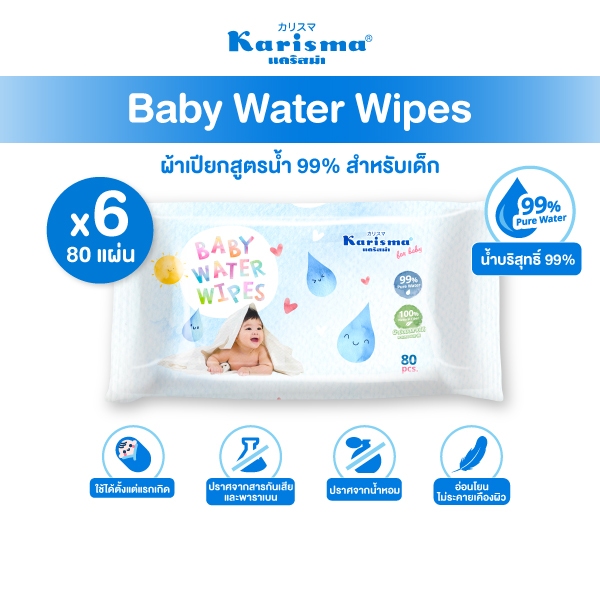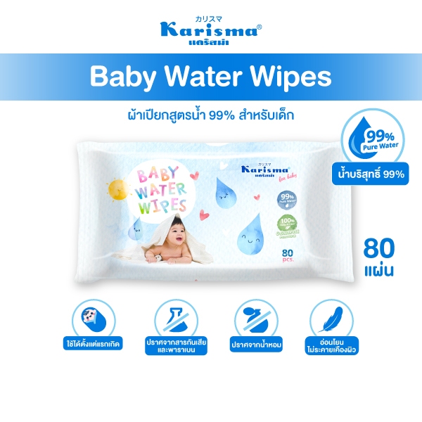 Karisma แคริสม่า ทิชชู่เปียกสูตรน้ำ ผ้าเปียกสำหรับเด็ก 80 แผ่น