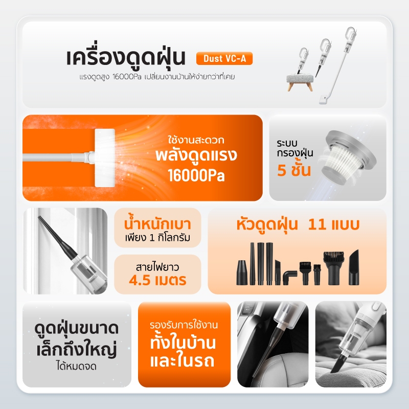 SCE Plus Vacuum Cleaner รุ่น Dust VC-A – เครื่องดูดฝุ่นแรงดูดสูง 16000Pa - รับประกัน 2 ปี
