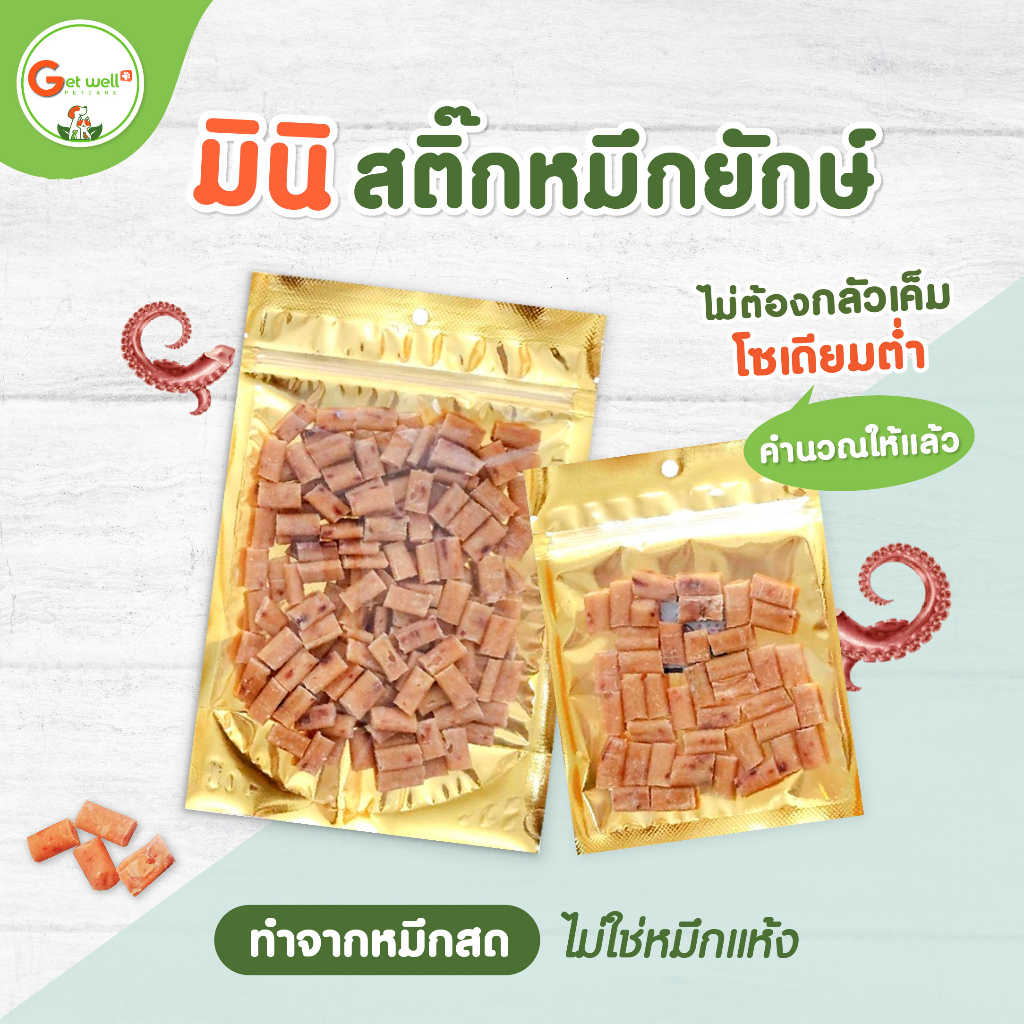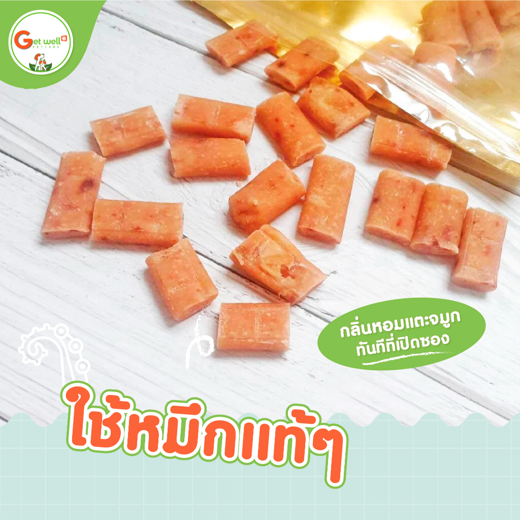 Get Well มินิ สติ๊กปลาหมึกยักษ์ ขนมหมา-แมว ไม่ต้องกลัวเค็ม ควบคุมโซเดียมต่ำ ทำจากหมึกสดๆ