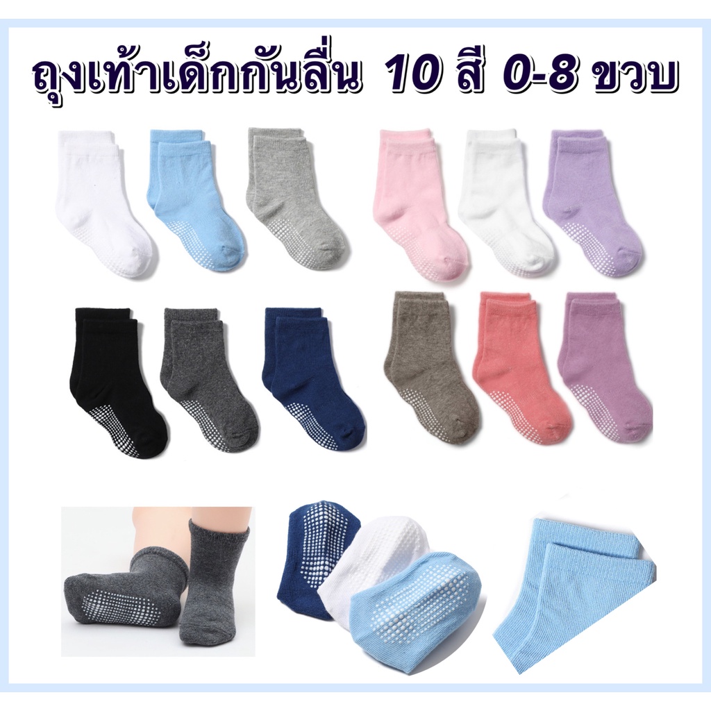 ถุงเท้ากันลื่นเด็กสีพื้น ข้อยาว เด็กผู้ชาย เด็กผู้หญิง