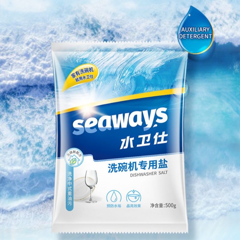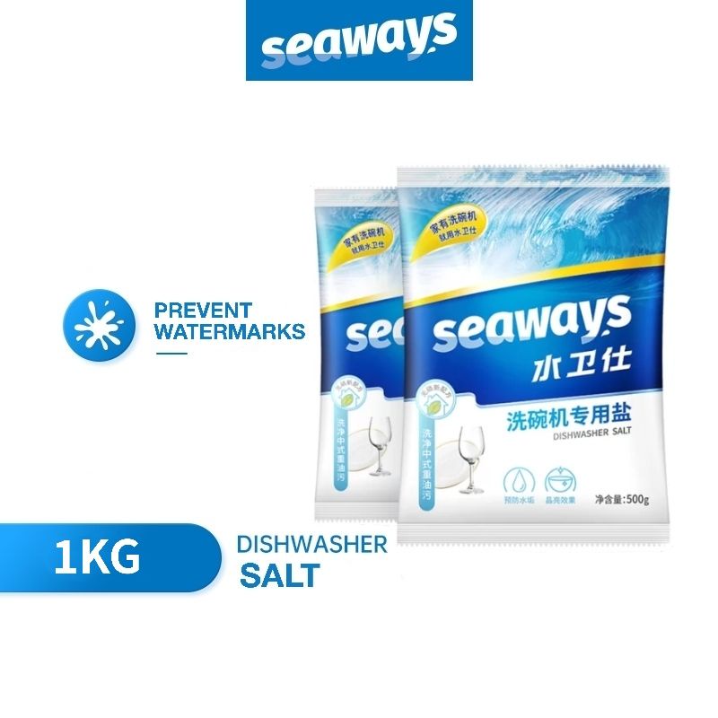 Dishwasher Salt Seaways 1KG (2*500g) ซีเวย์ส ผงเกลือบริสุทธิ์ ช่วยปรับสภาพน้ำ สำหรับเครื่องล้างจานอัตโนมัติ