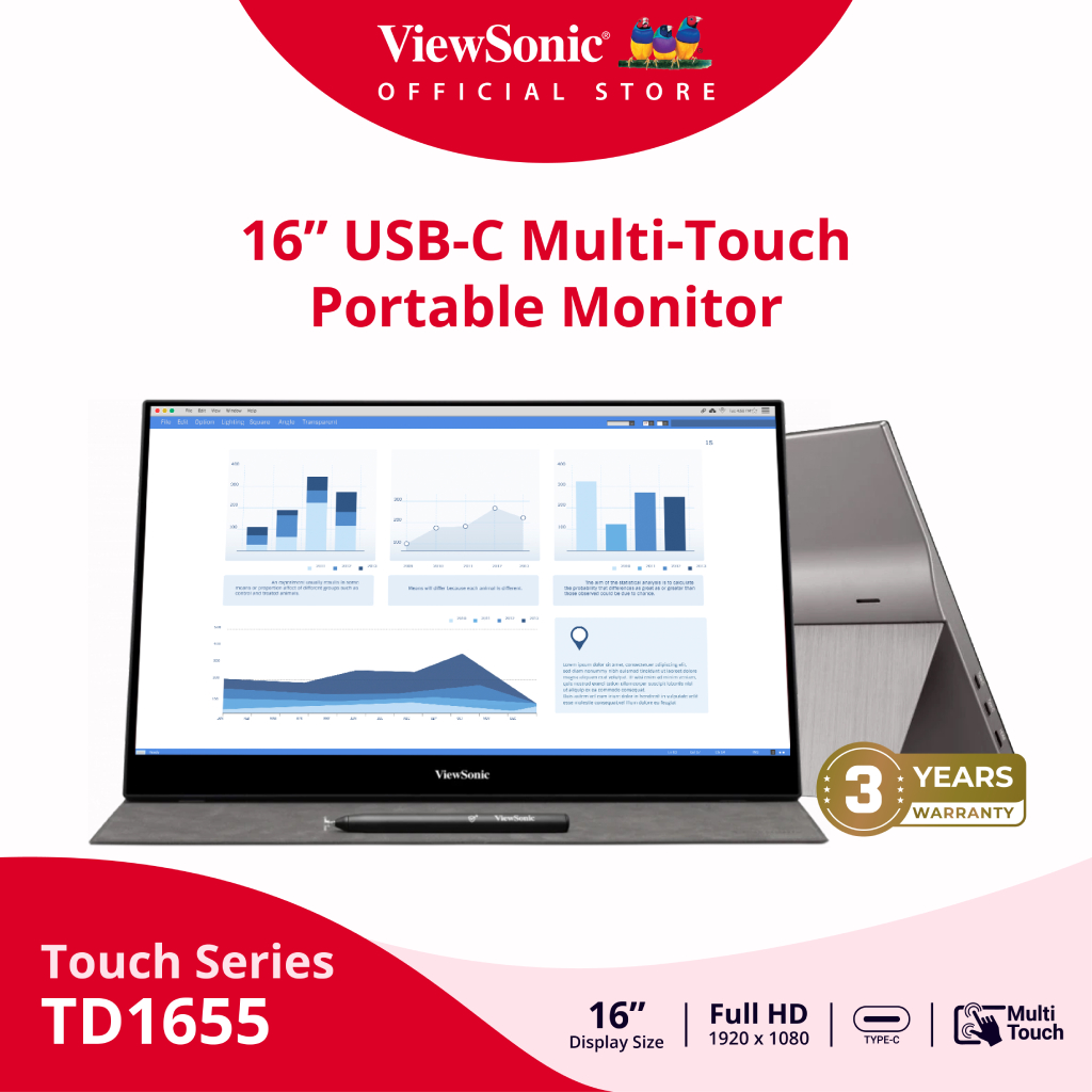ViewSonic TD1655 Touch Portable Monitor / 15.6" / IPS / 60 Hz / 6.5 ms (Portable monitor) (จอสำหรับพกพา,จอทัชสกรีน)