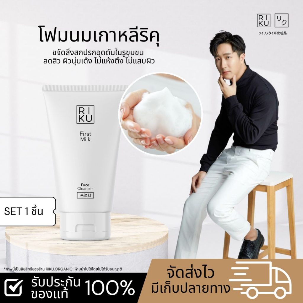 Riku ริคุโฟม First Milk Face Cleans น้ำนมเกาหลี ลดสิว ผิวแพ้ง่ายใช้ได้ โฟมล้างหน้า น้ำนมข้าว ลดมัน สิว ผิวกระจ่างใส