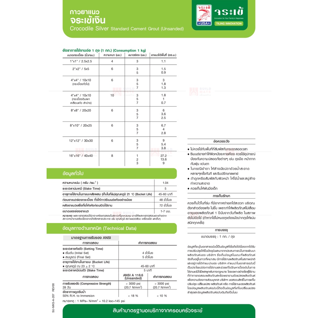 จระเข้ กาวยาแนว ยาแนว จระเข้เงิน ( น้ำหนัก 1 KG. ) มีให้เลือกหลายสี *ไม่หลุดร่อน ไม่หดตัว ไม่มีกลิ่นเหม็น ไม่อันตราย*
