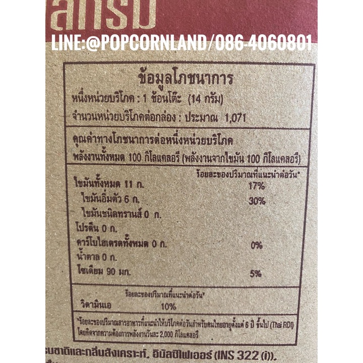 เนยตราป๊อป Fat spread สเปรดและเนยเทียม ทำป๊อปคอร์น popcorn ทำขนม น้ำหนัก 15 กก./ลัง (สินค้าเป็น1ก้อนใหญ่15กก.)